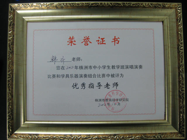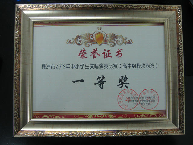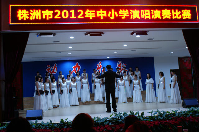 (本网讯)在12月20日举办的株洲市中小学生演唱演奏比赛中,我校星空女子合唱团表现出色,在10个参赛队伍中夺得总分第一,以绝对领先优势获得一等奖,韩乔老师被评为优秀指导老师。