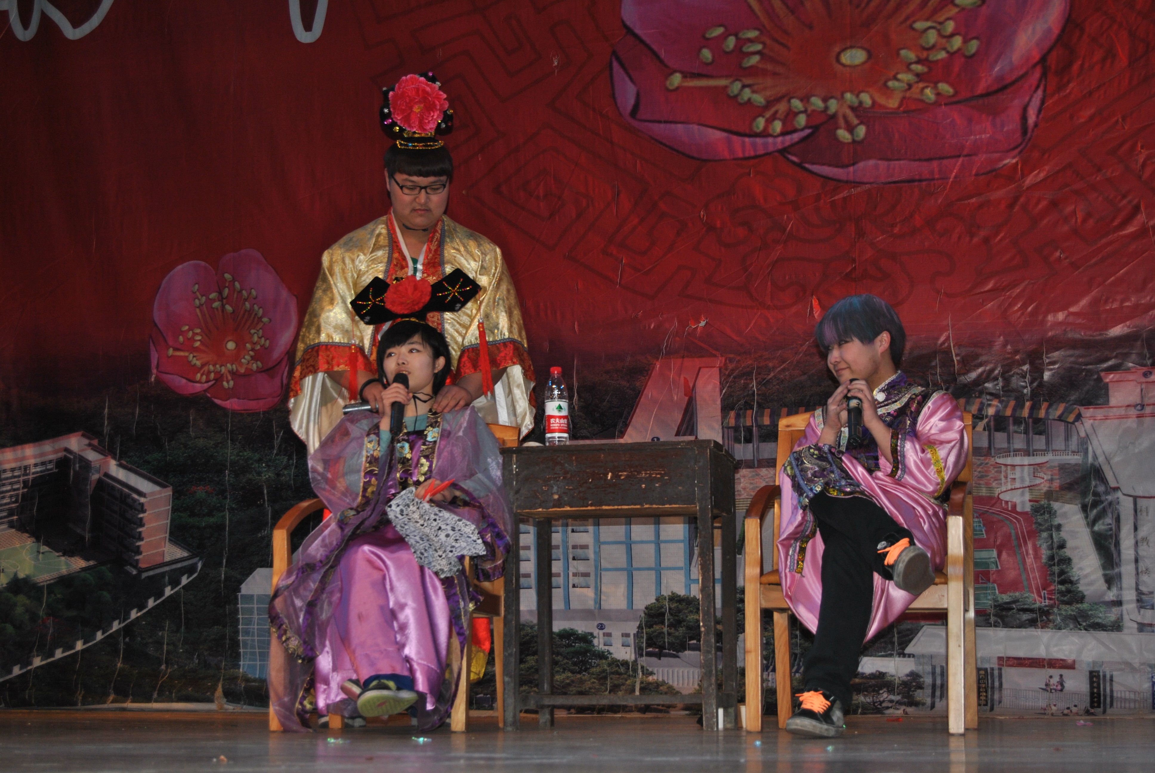 展现在全体师生眼前的不仅有动人的歌曲和欢快的舞步,还有妙趣横生的双簧,地道的湖南方言配着湖南普通话亦庄亦谐的表演令在座观众捧腹大笑。1103班的话剧《甄嬛传》、1001班自编自导的话剧《那些年我们一起追过的秦始皇》等都充分展现了表演者的天赋,加上表演者落落大方,赢得了阵阵喝彩。