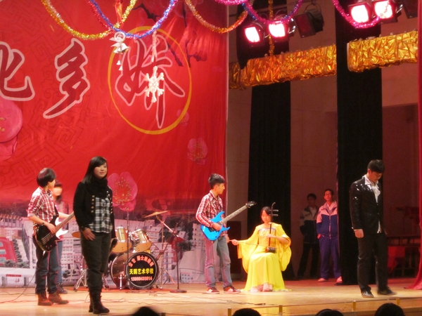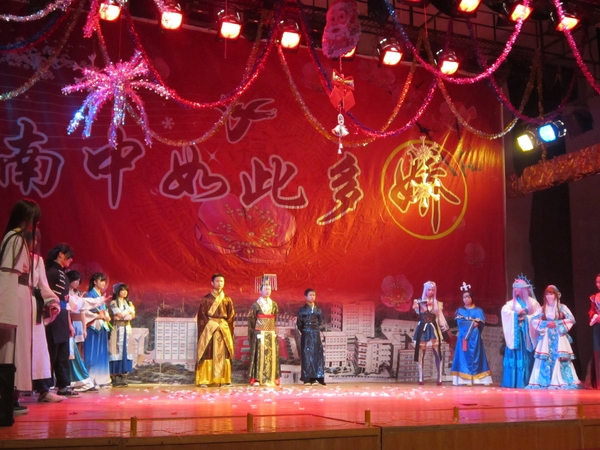 (本网讯) 跨年之际,南中一年一度的元旦汇演如期而至。2012年12月29日晚7点,南方中学元旦汇演在艺体馆拉开帷幕。这是一个辞旧迎新的关口,这亦是一个才艺展示的舞台,南中学子用他们自己的方式给南中献上新年的祝福。高二年级学生精心筹备的节目更是赢得观众的阵阵掌声。其形式新颖多样——乐队、歌舞、魔术、音乐剧、cosplay、话剧等等,可谓是绝少重复;其制作精良——乐队配合默契,话剧表演极具张力,服装道具精致完备……足以让观众叹服。让我们再次回顾那些精彩瞬间吧!