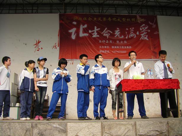 2012年5月5日下午3:30,我国著名青年演讲家张云栋老师主讲的《让生命充满爱》走进南方中学,南方中学、凤凰中学、淞南中学的2000多名师生家长聆听了这场震撼人心的演讲。