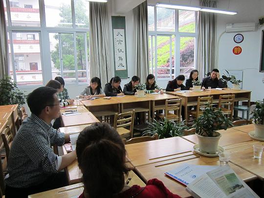 近日四中高一年级英语组组长提出来我校学习英语教学,我校英语科研基地带头人刘正芳老师欣然应允。四中的八位高一英语老师及本校的十一位老师一起听了优秀青年教师陈敏的一堂写作课。课后大家对这堂课进行探讨交流,一致认为虽不完美,但优点突出,极具新意。英语写作不再只是文章整体结构、条理及语法等结构,也可以分块,运用词块教学,使写作课更具效果。最后双方表达了希望能多点这样的机会互相学习,以促进两校的英语教学水平。