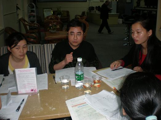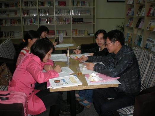 4月11日是株洲市第一次高中英语教师研训的第二天。上午,四个工作坊集体研读教材、确定教学目标后,各派一至两名教师上课,其他教师则听课;下午,全体专家学员在清心轩进行小结,然后,分组进行批判性评课,博采众长,探讨各类课型的共性,重新打磨上午的教案。