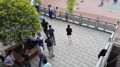 4月27日上午第二节课后的课间操时间到来,因有雨,跑操地点改到了学校文化长廊。高二年级的老师们在长廊边列好队,和着哨声、绕着长廊跑了起来。参与的老师们有说有笑,不少本来只是旁观的老师也被同事渐渐拉进了队伍中。而上完第二节课走出教室的同学们更是十分好奇,纷纷走到一边围观,还有加油的、凑上来跟跑的,一片祥和景象。这是第一次,自即日起,以后每日都将如此,风雨无阻。
