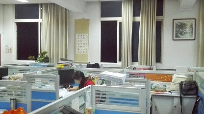 第二天就是五一假,各位阅卷老师都在加班加点。夜晚临近9点,学生早已经各自归家,其他已经完成阅卷任务的老师相继离去,而高二历史组的老师们仍旧守在办公室批改试卷。历史科目是当天最后一门考完的,历史老师们吃过盒饭就开始批阅,已经连续工作了了近3个小时,同时,年级组负责成绩统计计算的乔加新老师也一直在电脑面前忙碌着。整个办公室算上笔者在内只有三个人,彼此无话,忙碌着各自的事情。