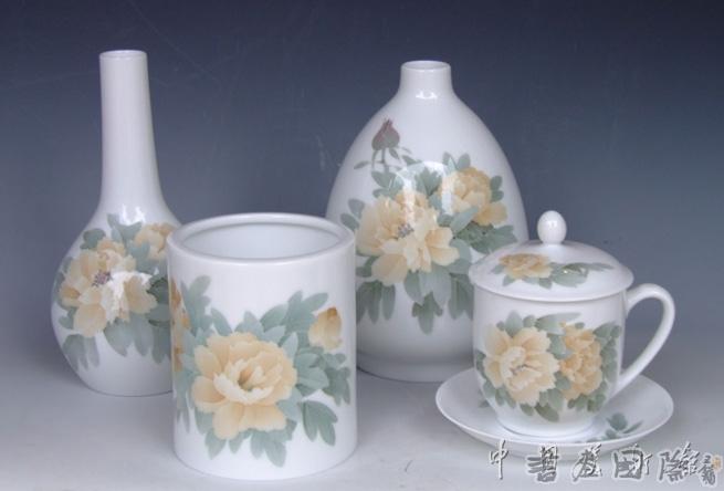 有一幅画:四种瓷器,外在形态不同。功能各异,但组合在一起,给人的感觉是很美,美在哪里?一是色彩淡雅,给我们的视觉刺激是很柔和,没有超出一定的界限;二是摆放位置得当,高低错落有致;三是组合成这幅画的各种要素构成了一种和谐,如背景、瓷体上同类但形状各异的花卉。