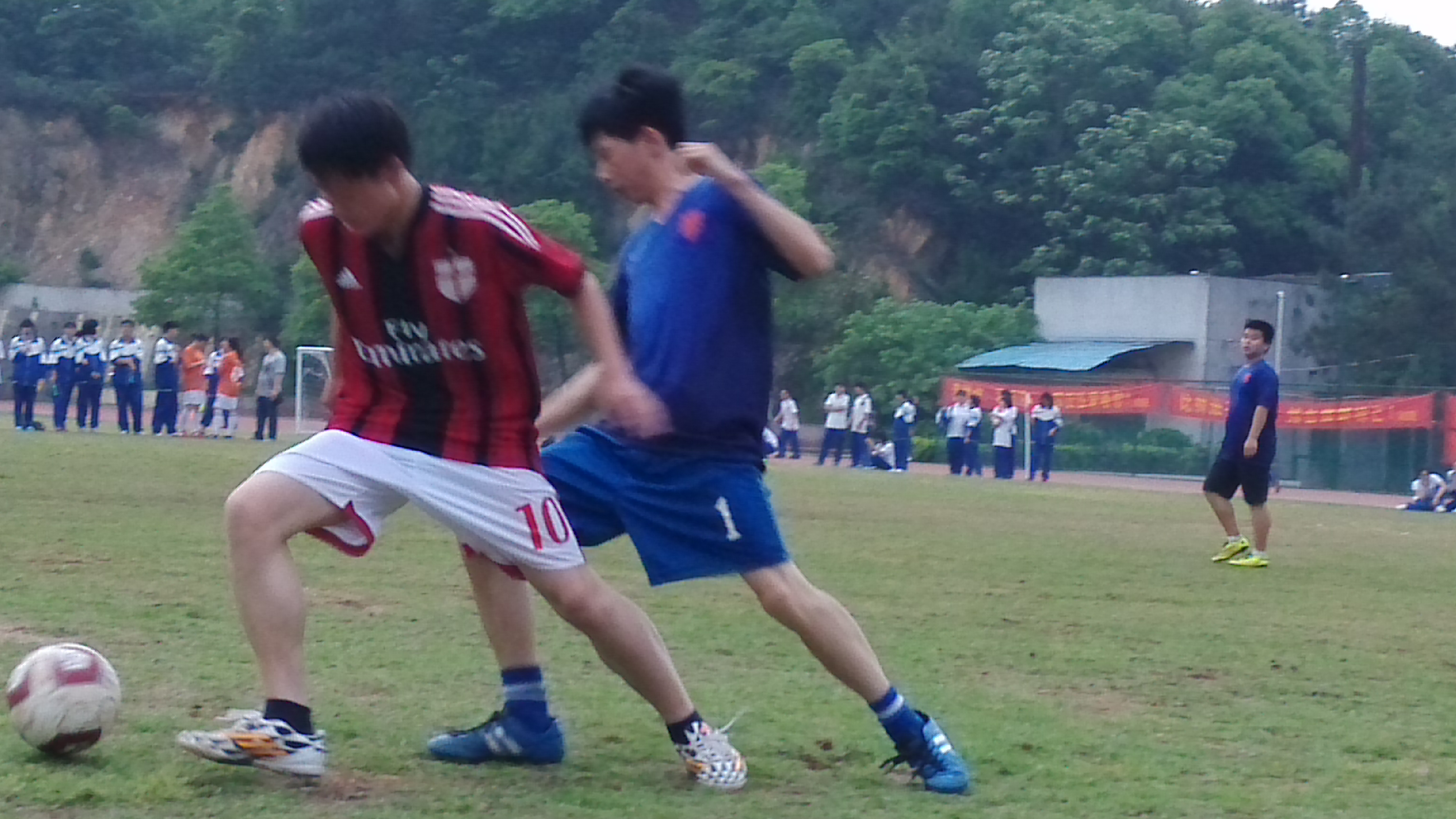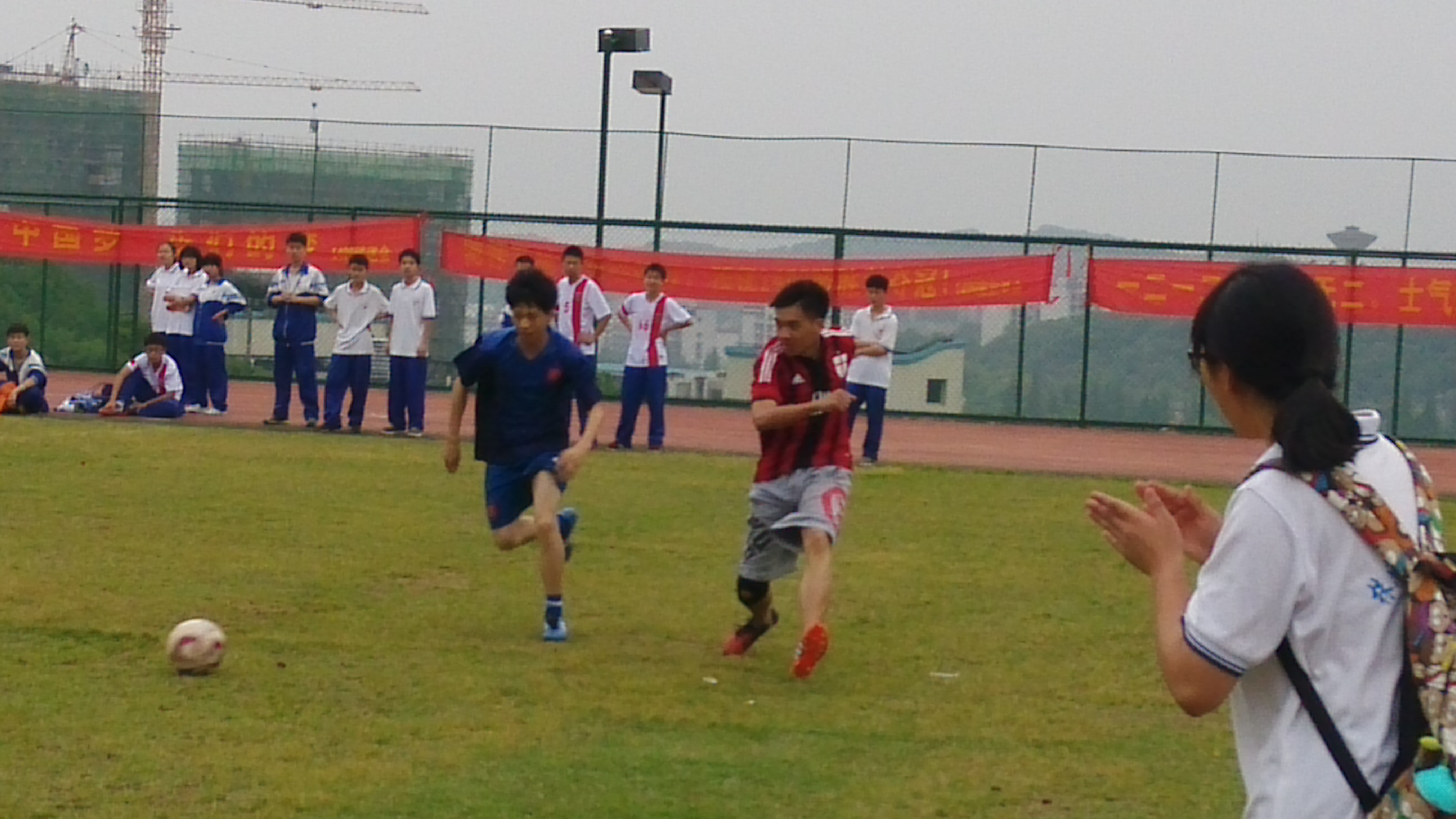 两方球员为争一球,寸步不让,使得比赛精彩纷呈;场外观众十分激动,伴随着球员们激烈的争夺,掌声呐喊声接连不断——不论是场上球员,还是场外助威的观众,大家都充分发扬了班级同学间团结友爱的精神以及永不言败的个性,,可以说,一场足球赛足以窥见一个班级的性格与文化,通过比赛,班级凝聚力也得到大大提高。而面对最后的结果,有些球员默默地流下了伤心的泪水,他们为班级而战的责任感与荣誉感,点点滴滴透露在为比赛流下的汗水甚至泪水中。