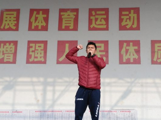 学生科刘科长祝词,回顾联赛历史,希望大家友谊第一,比赛第二。