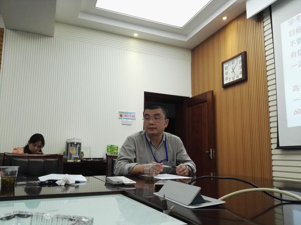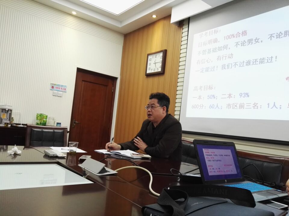 会上,高二年级主任谭雄杰老师,认真全面地总结了本学期的教育教学情况,利用各种数据和资料,充分肯定了本年级任课教师的责任意识和严谨工作作风。谭老师针对教育教学,分别对本年级学生和已毕业的学生,做了两个调查问卷,客观全面地分析了调查数据,提出了相应的目标和对策。谭老师秉着“不怕问题多,就怕没人说,更怕没人管,最怕管不严”的坦诚和高度责任心的态度,就事论事,直击目前工作中的问题和不足,引用名人名言,激励全体教师同心协力,抓住重点,备战学考,实现目标。