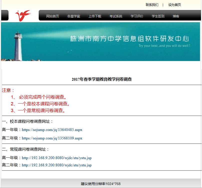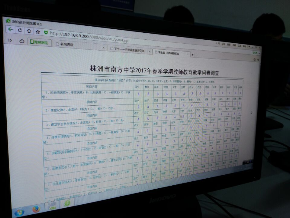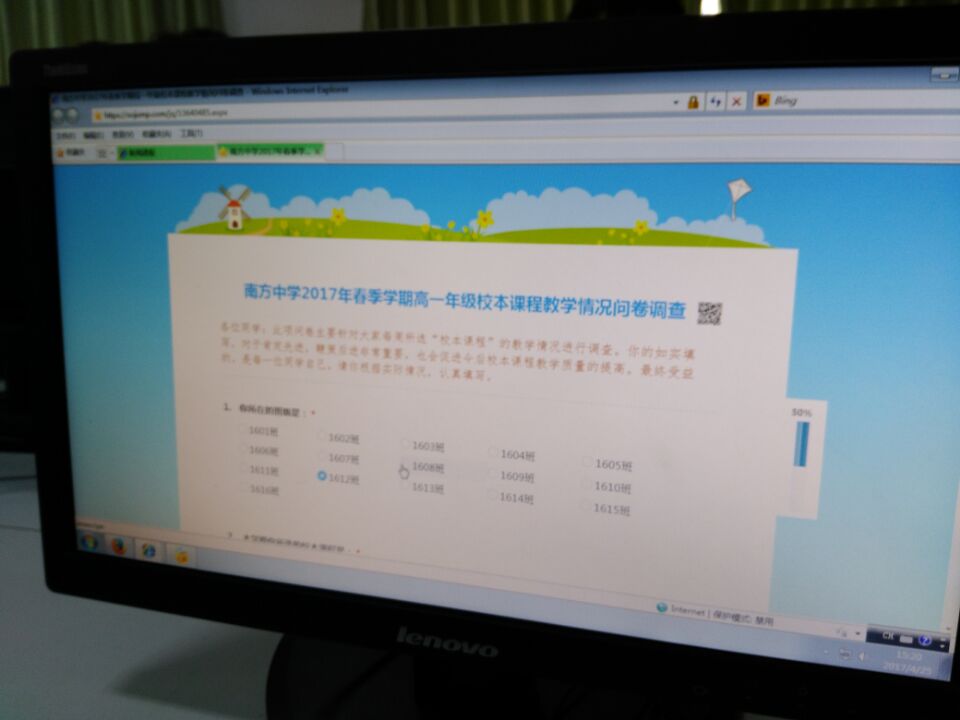 本周,高一年级开启了2017年春季学期教师教学问卷调查网上填报工作。希望通过积极推进教学常规工作全方位、多维度的督查管理,更有效的促进学校教育教学的长足发展。