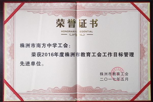 ----南方中学获2016年度株洲教育工会工作目标管理先进单位