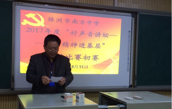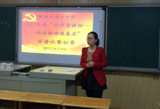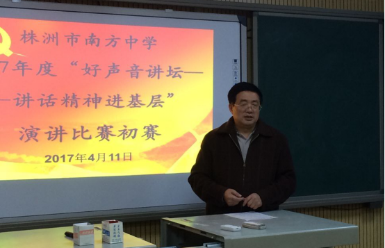 4月11日下午,我校“好声音讲坛——讲话精神进基层”演讲比赛初赛顺利举行。分别来自三个年级的冯圣昆、李灿、李文艺、廖晨兰、牛丽冬等5名教师通过赛前的充分准备和赛中的充分展示,为大家展示出了一场精彩的演讲比赛。赛后我校语文特级教师肖守志老师进行了精辟生动的点评,让大家获益颇多。最后,通过评委会的一致评定,由曾四喜主席宣布我校“好声音讲坛——讲话精神进基层”演讲比赛结果:李文艺荣获一等奖;冯圣昆、廖晨兰荣获二等奖;李灿、牛丽冬荣获三等奖。下周,李文艺老师将代表学校参加全市教育系统的比赛,也预祝李文艺老师载誉归来,为学校添光辉。