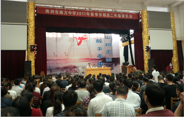 九点,高二家长会艺体馆会场,准时开始。会议由南方中学学生科刘国勋科长主持,教务科科长周一坪和高二年级主任谭雄杰均做了热情洋溢的汇报,总结了半学期以来同学们的在校表现,表扬了一大批优秀学生和集体,并对今后提出了殷切的期望。之后,家长们回到孩子所在班级,由学生、班主任、任课教师等,多角度全方面,介绍学生在校的德智体美劳等方面的情况,探讨现阶段学习困扰和今后的目标等。