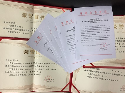 为总结株洲市近年来教育教学改革和研究的优秀成果,2016年下半年,株洲市教育局组织了第六届教育科研成果评奖活动,经过基层单位推荐申报,评审委员会评议审查,成果公示,共评出优秀科研成果87项,我校肖守志老师编著的《语文秀才》获得一等奖;以教科室和国际合作部为首总结的“坚持教育国际化,不断培养创新性人才”经验总结获得二等奖;以刘正芳老师牵头的研究报告“高中英语有效教学策略研究”、政治基地和国际合作部总结的“模拟联合国”经验总结各获得三等奖。