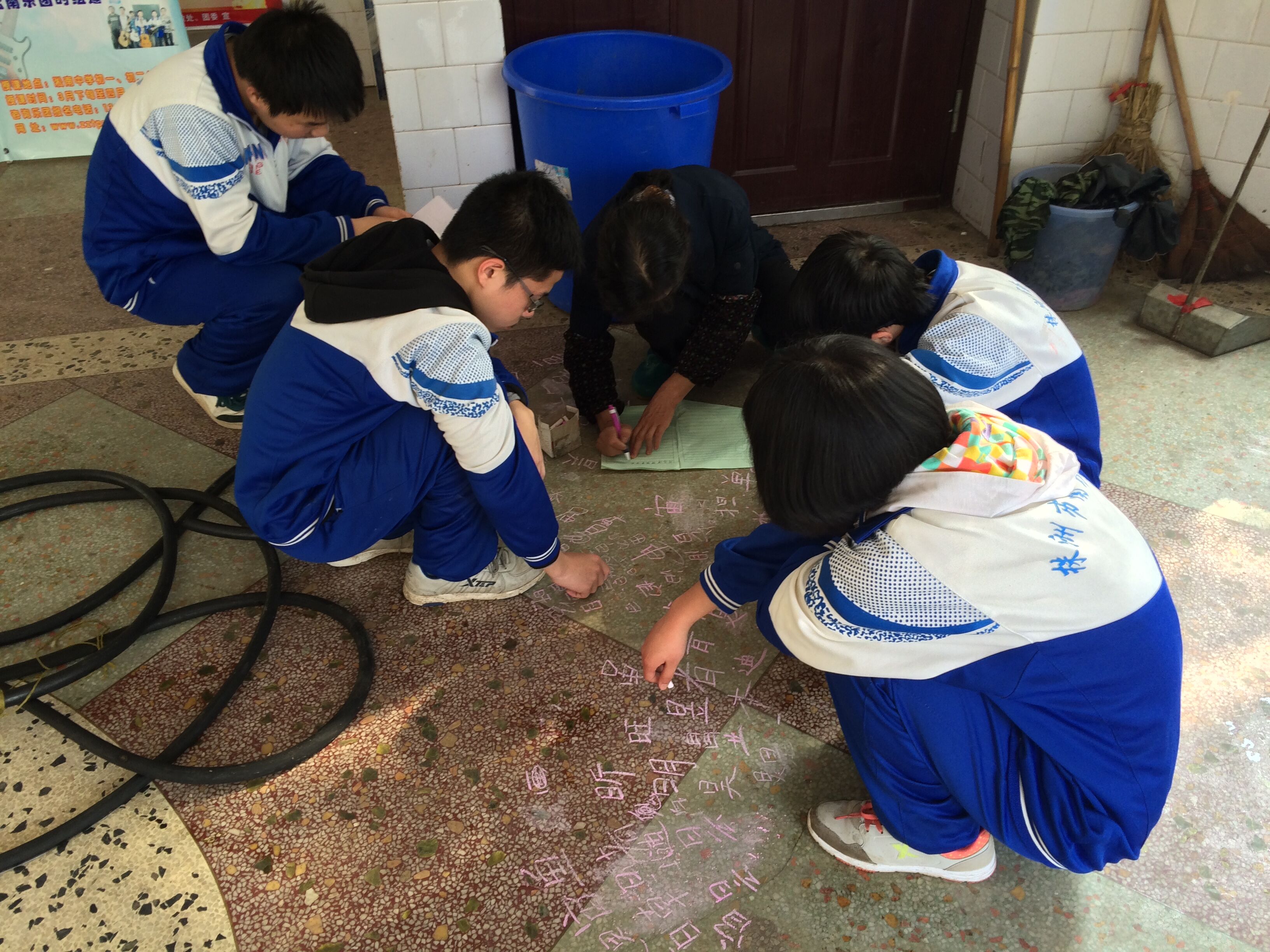 下午走进教学楼,3班几个学生围着保洁阿姨蹲在地上的场面映入眼帘,大家拿着粉笔写写画画,似乎在研究什么问题。凑近一问,身体力行打扫校园的休息时间、劳动的闲暇,保洁阿姨给大家出题做呢!同学们正在研究“一个‘日’字加四笔可以有哪些字”,苦思冥想,力图找出更多符合要求的汉字。