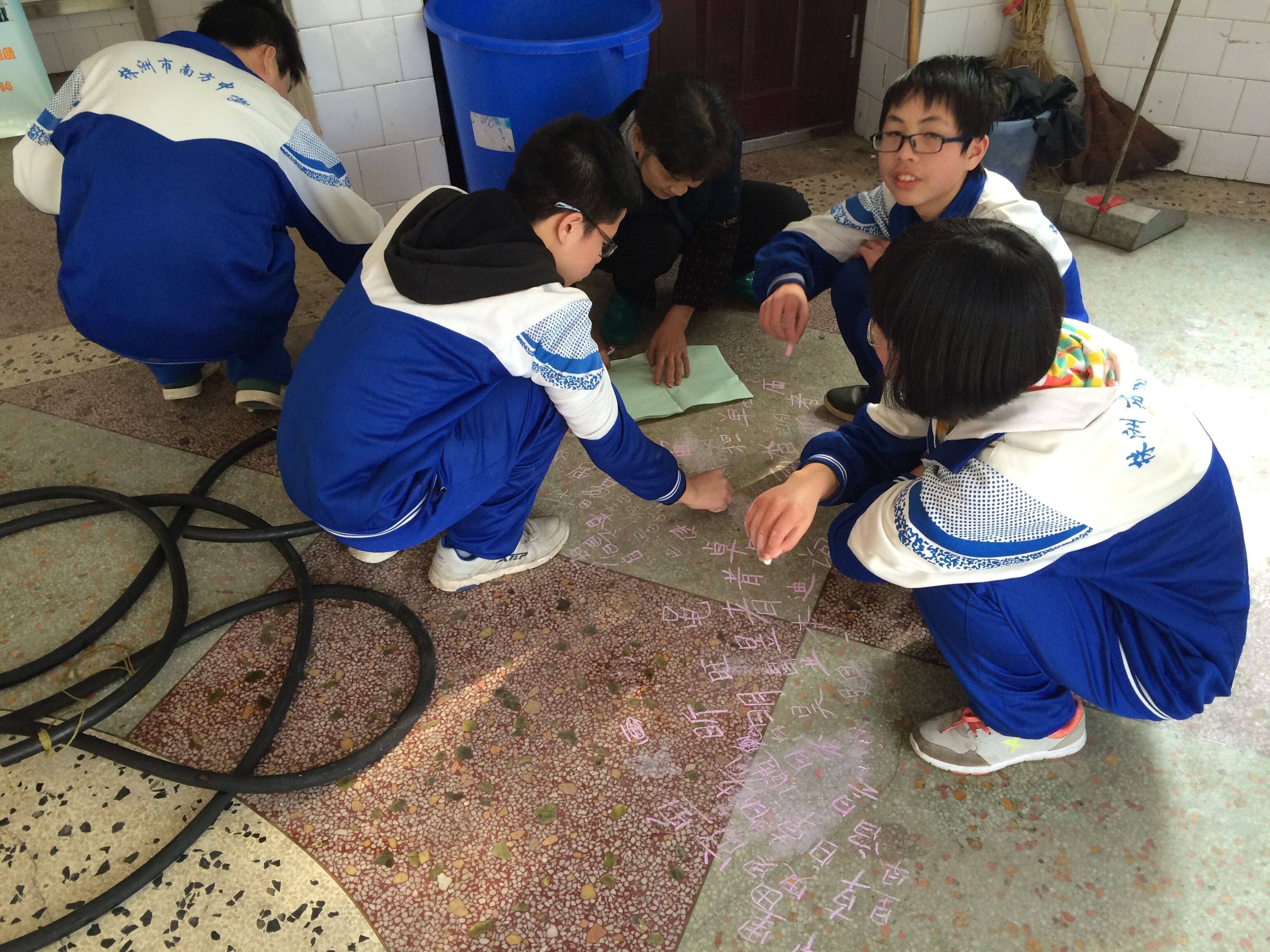 (地上写满了同学们和保洁阿姨共同想出的答案)