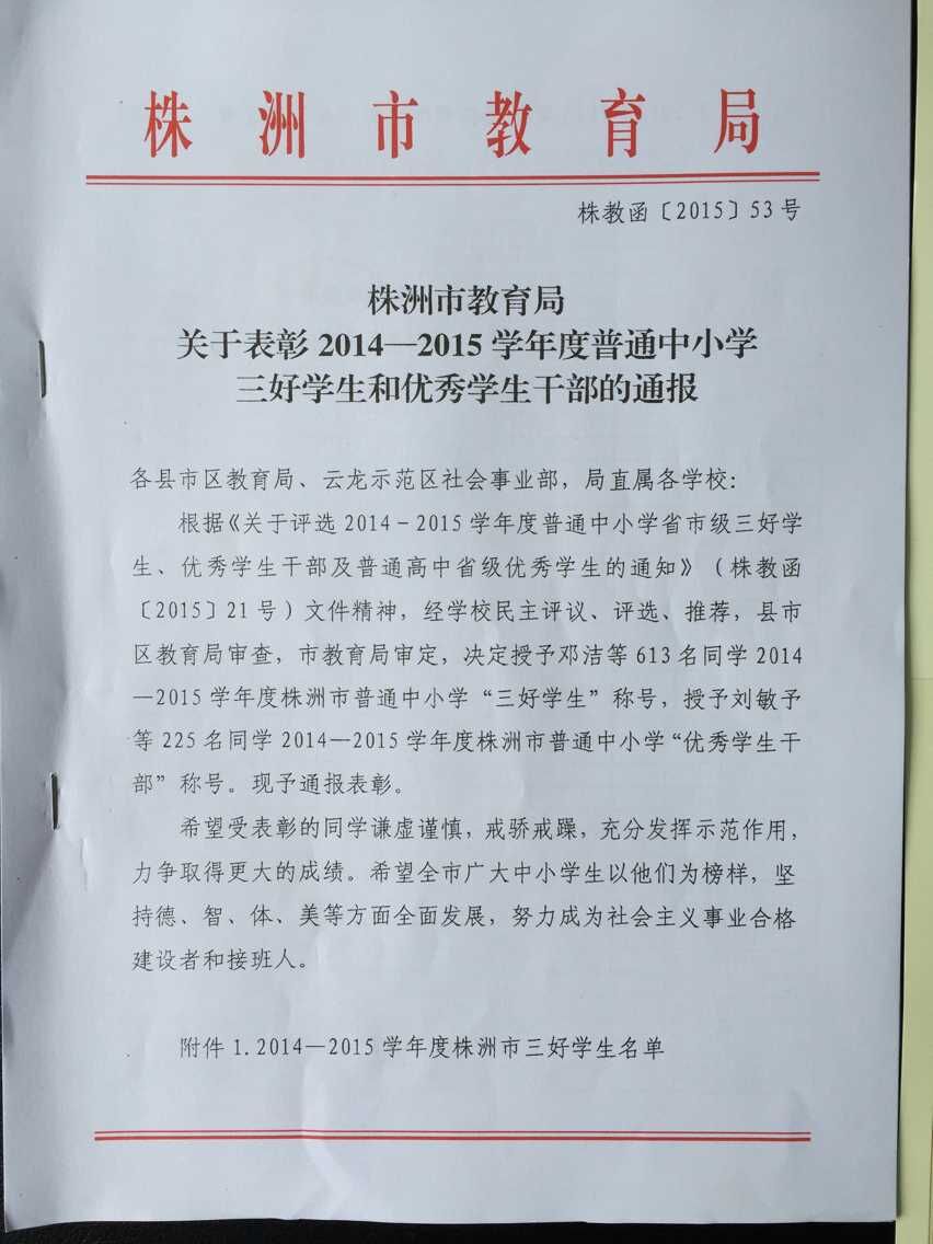 市级三好学生: 陈涛、贺子龙、夏颖、吴冰冰、袁正午、戴亚吉、殷东瑞