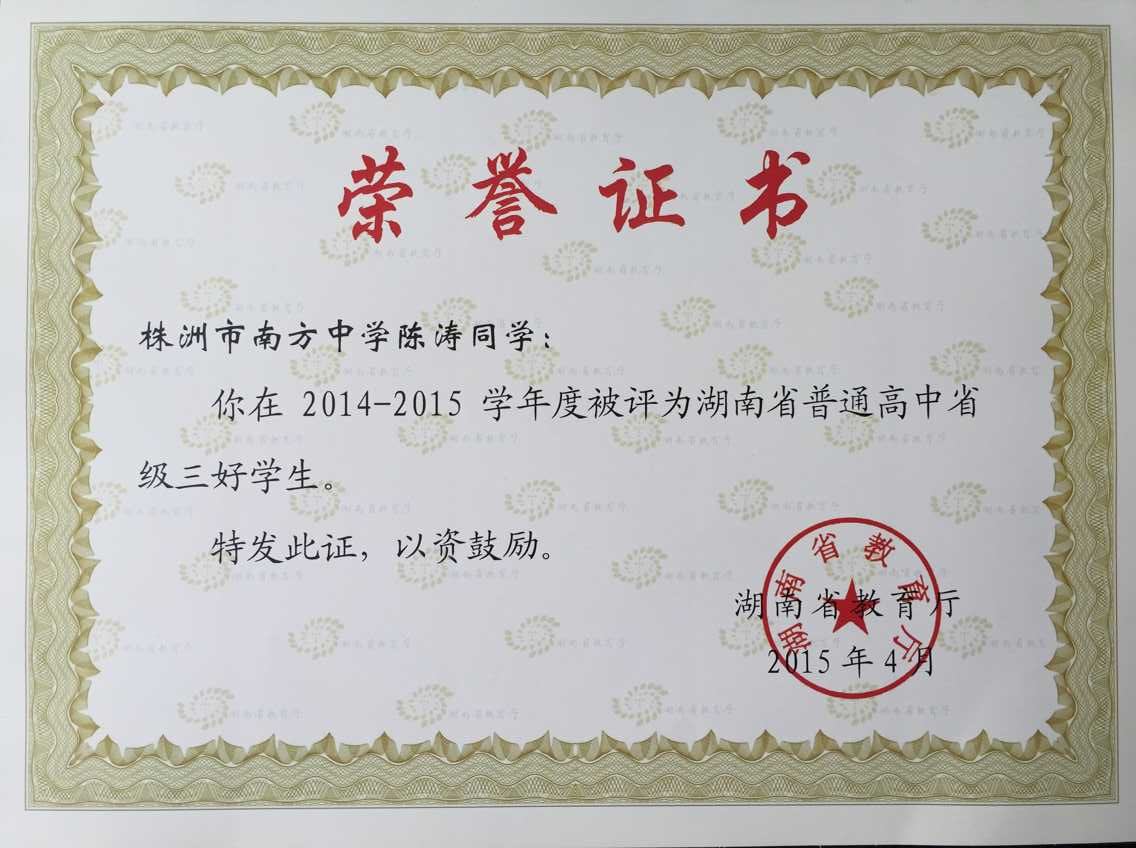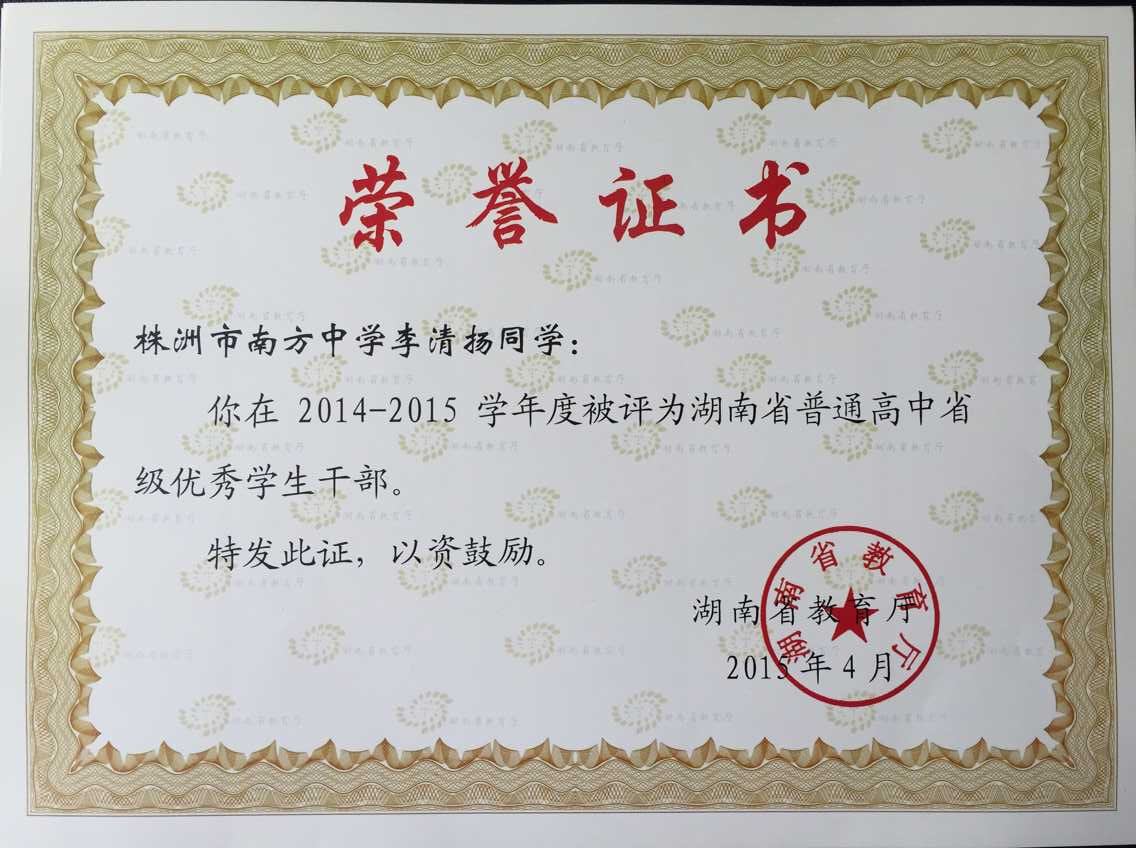 经过学校民主评议、评选、推荐,市教育局、省教育厅审批,南方中学以下同学荣获2014—2015学年度省市三好学生、优秀学生干部称号。