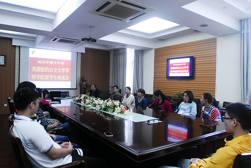 2015年10月13日上午10点,南方中学为去美国纽约市公立大学的6名学生举行了欢送会。6名同学将不用参加中国的高考,直接进入美国纽约市公立大学。