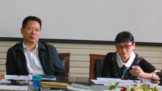 米仁金校长和周亚娟书记认真听取商家的资质说明