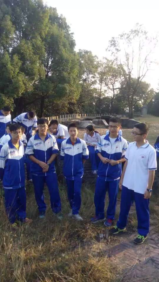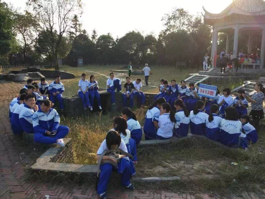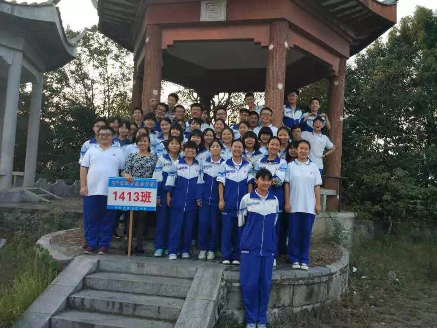 下午第八节课,高二学生篮球赛开球仪式过后,1413班便浩浩荡荡向学校附近的凤凰山进发了。孩子们逮着这个亲近大自然的机会,一路欢笑;到山顶上,游目骋怀,分组念诗、唱歌。黄宁宇同学还即兴填词一首: