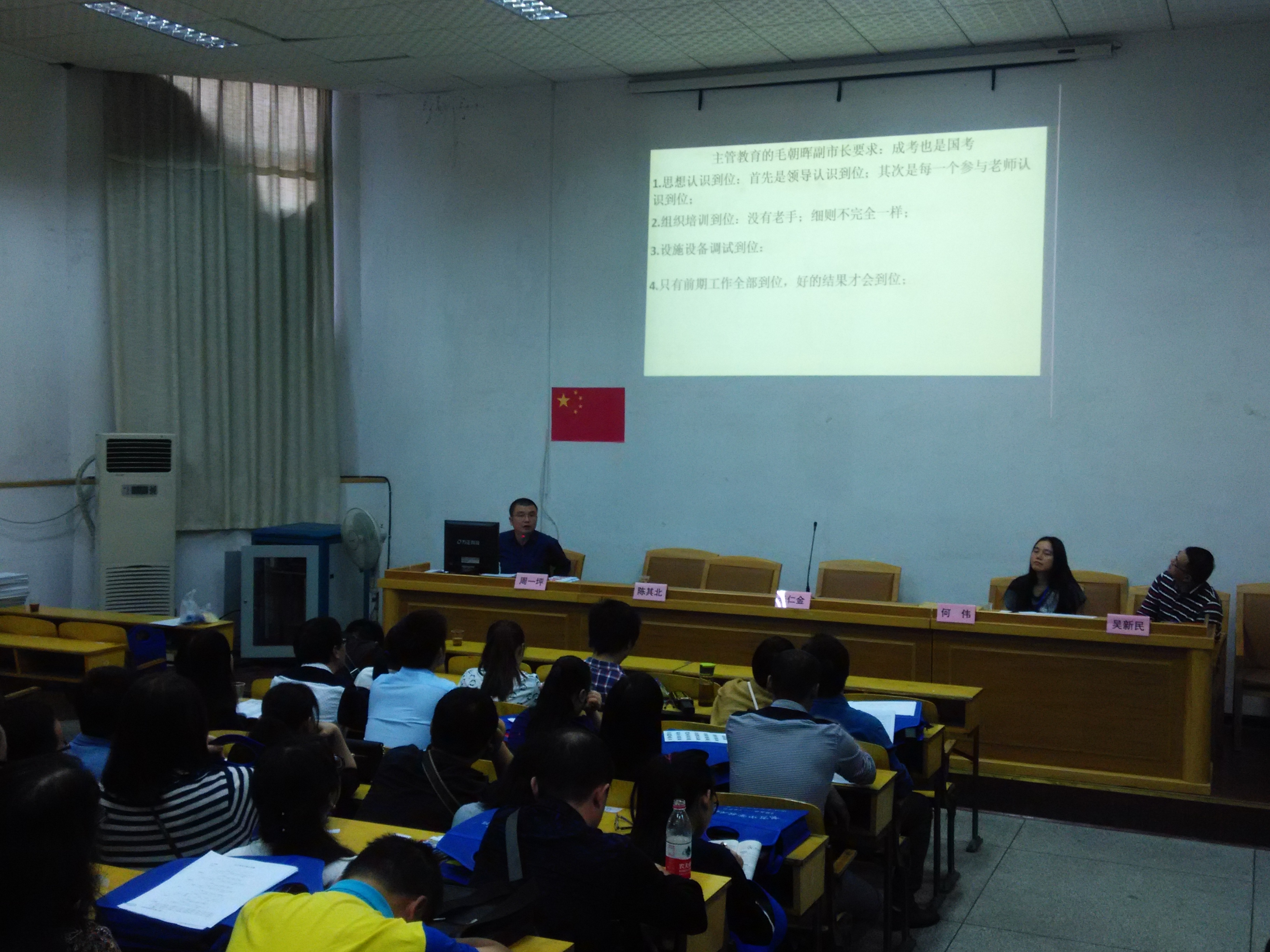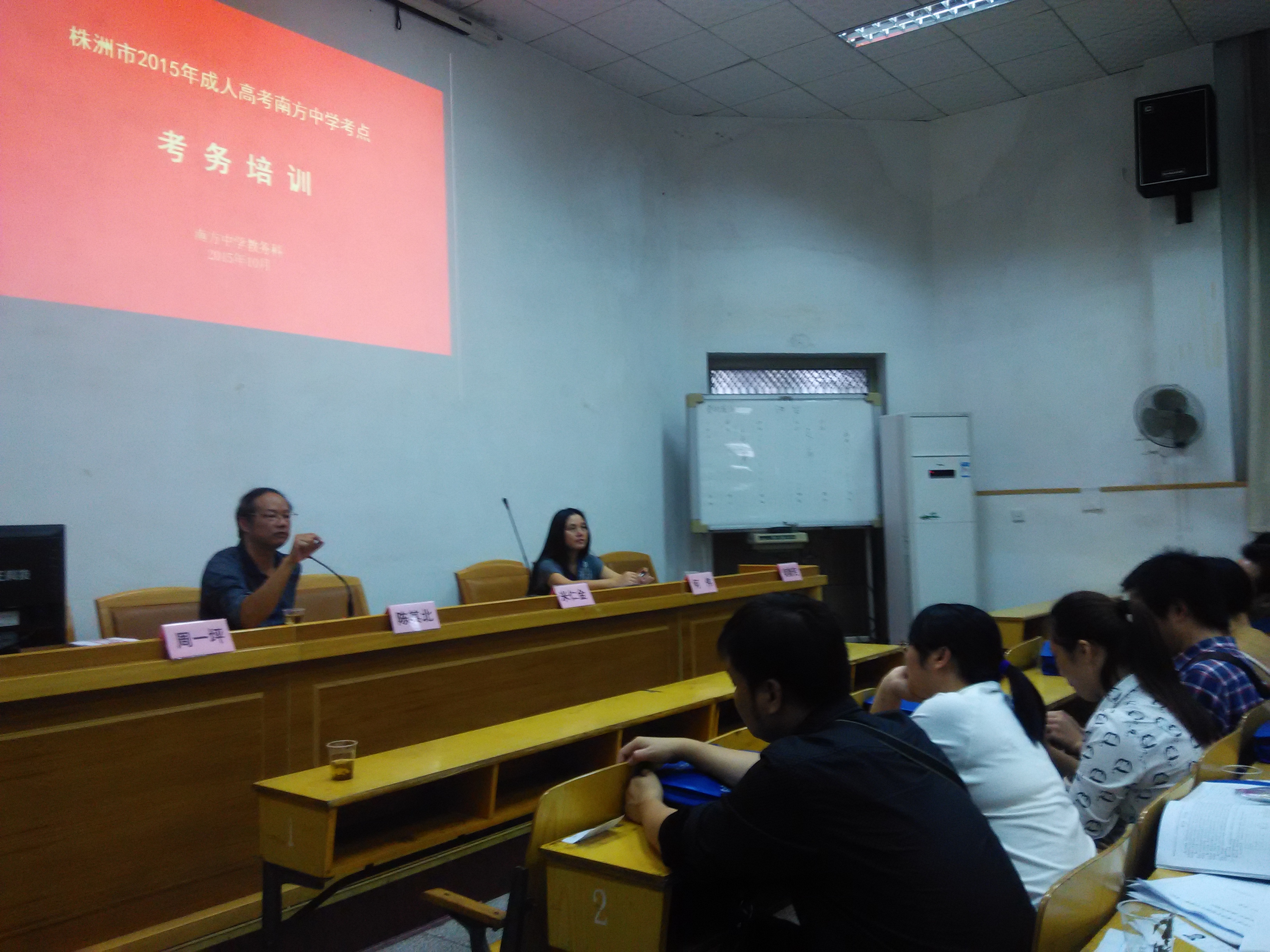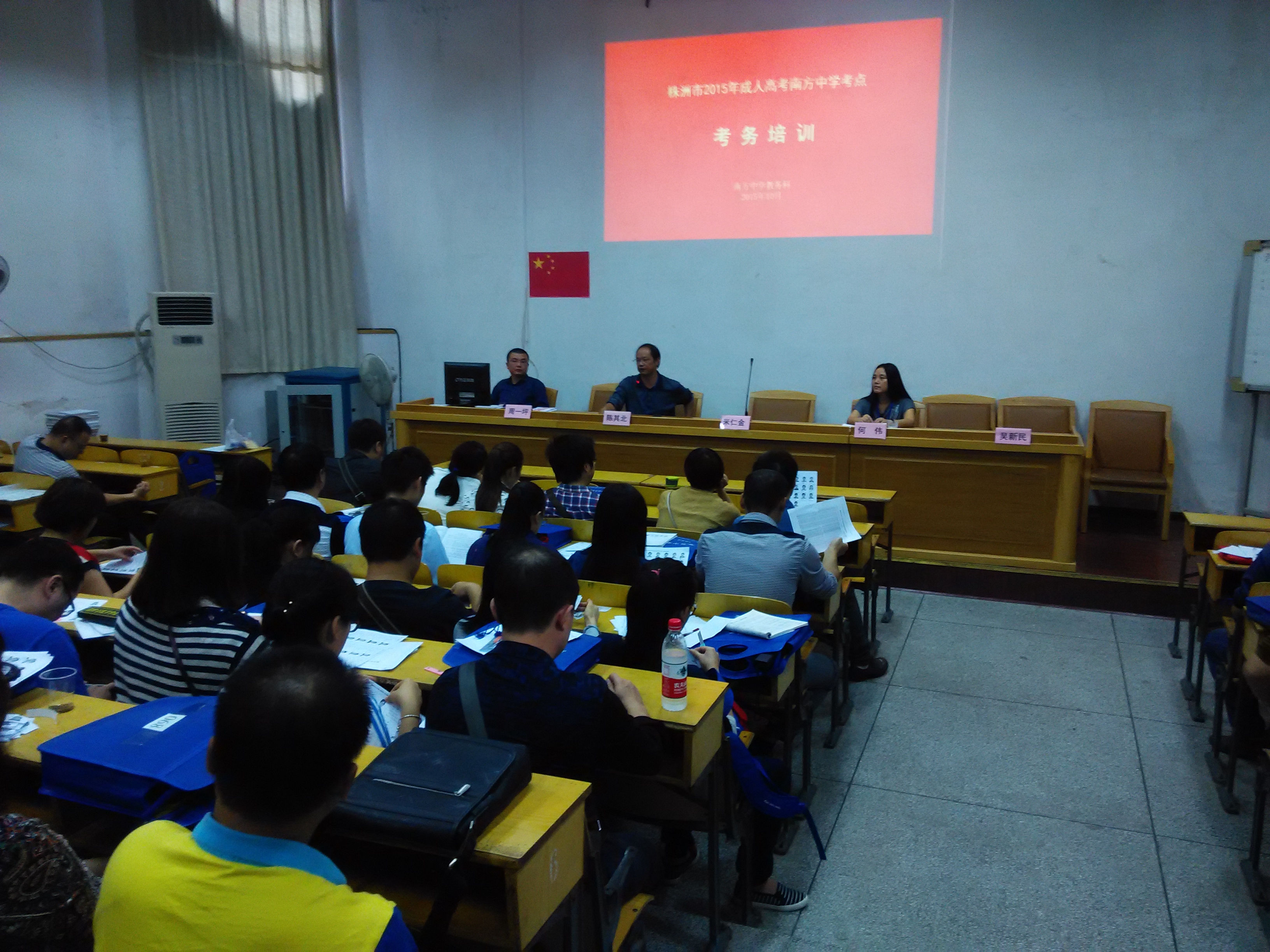 一年一度的湖南省成人高等学校招生全国统一考试不仅关系到考生的前途,也是每年社会关注的热点,是和高考一样重要的“国考”。作为株洲市考点之一的南方中学组考工作能否做到安全、公平、科学、规范,既关系到整个株洲考区的正常秩序,也关系到学校的社会声誉。因此,我校考点从组织机构、部门协调、考务联络、制度管理、考场检查、试卷保密等多方面进行了分工安排。尤其在考务组织上,多次召开协调工作和培训会议,要求全体涉考工作人员充分认识成人高考工作的重要性、严肃性和复杂性,抓住“考生、考场、考卷、考纪”4个关键元素,职责明确,责任到人,环环紧扣,确保考试工作顺利进行。