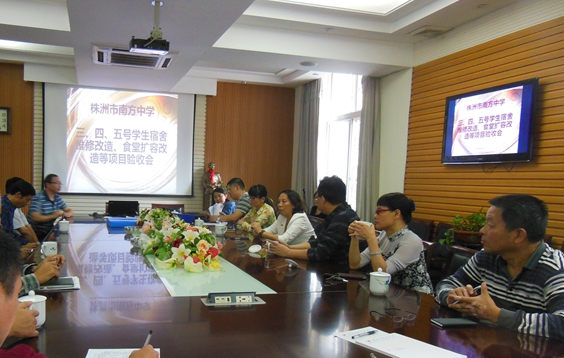 2015年10月21日下午,市教育局、财政局领导一行6人对我校暑假实施的“三、四、五学生宿舍维修改造、食堂扩容改造”等项目进行验收。经过3个多小时的现场勘查、会议讨论,最终以上项目顺利通过了局领导的检查验收。