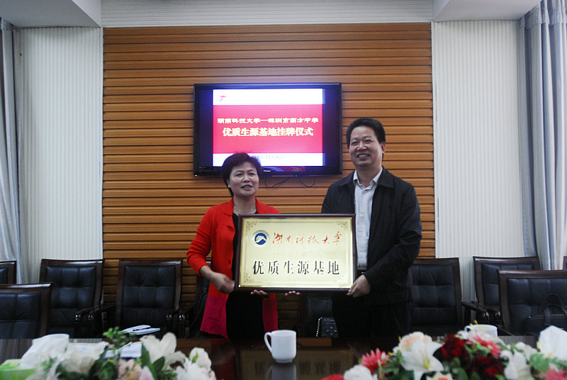 此行的主要任务不仅是“授牌”,更是两校间建立友好关系,加强沟通交流的主要桥梁。湖南科技大学副校长李琳说:南方中学成为优质生源基地是高等教育与基础教育的衔接,中学不仅可以为大学提供优质生源,大学也可为中学提供优质的师资服务。