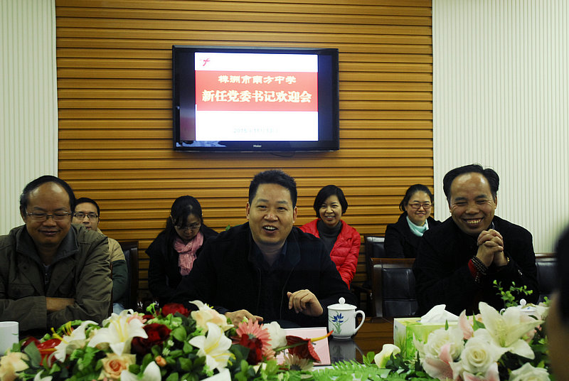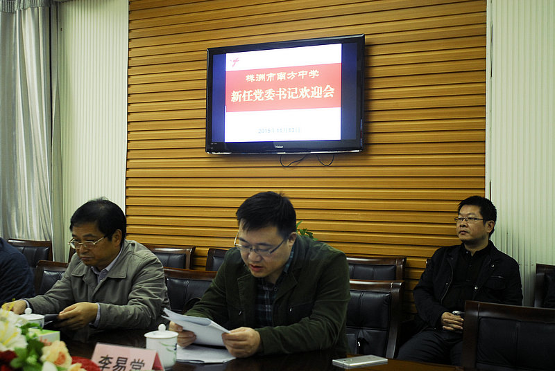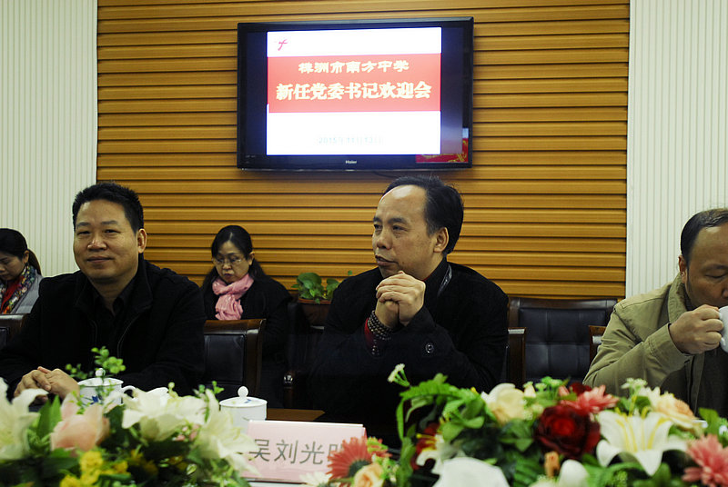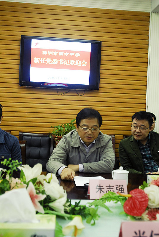 11月13日上午,南方中学在会议室召开新任党委书记欢迎会。市委组织部副部长朱志强、市教育局副局长李建国、市委组织部干部二科科长李易常、市教育局人事科科长龙超俊出席会议。会议由市教育局副局长李建国主持,学校全体中层干部、教研组长参加欢迎会。