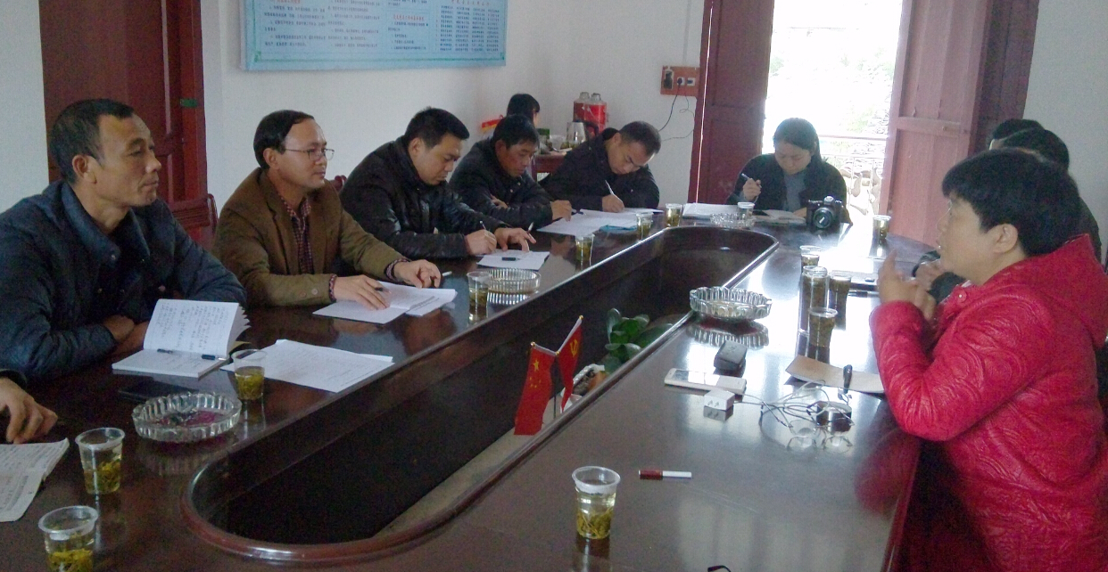 鲁主任(右一)听取乡、村干部关于帮扶成果汇报