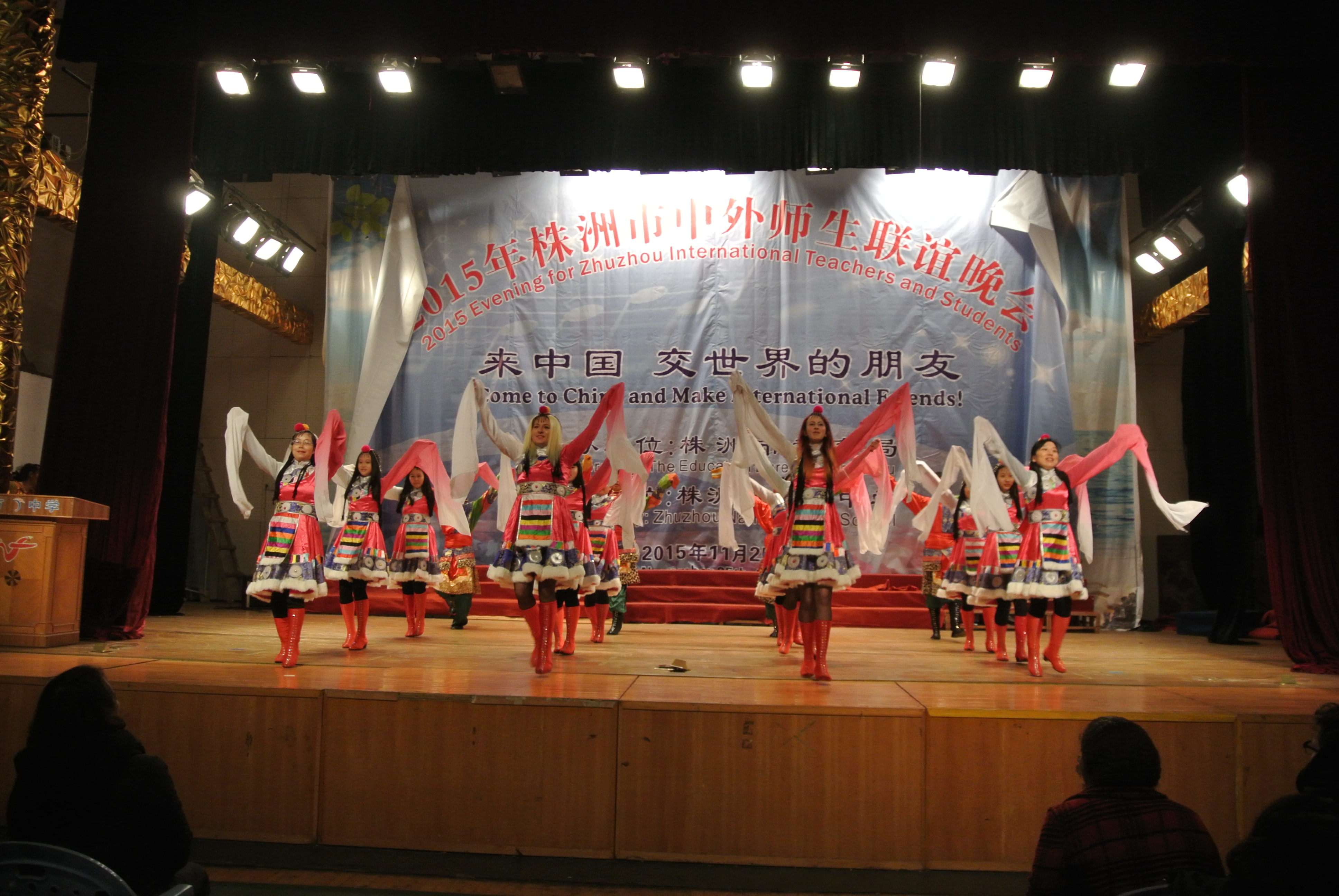 11月25日晚(感恩节之前),2015株洲市中外师生联谊活动在南方中学体育馆落下帷幕。该活动是市教育局国际交流科2015四大重点工作之一(外教送课到区校、株洲市国际理解教育大讲堂、株洲市中学生模拟联合国大会和中外师生联谊活动。)。也是我市第一次举行全市范围内的中外师生大联欢,充分体现了市教育局对在我市任教的外国文教专家的关心,市级外事管理部门的领导、专家,在株洲各校任教的外籍教师、各校外事主管领导及外事专干、还有参与活动的各校学生代表总计200人左右参与了昨晚的联欢。