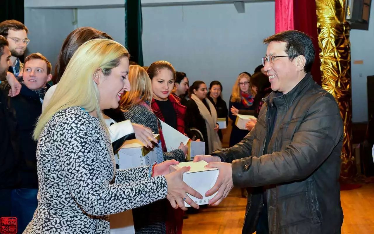 旅游与外事侨务局黄上峰局长向外教赠送礼物
