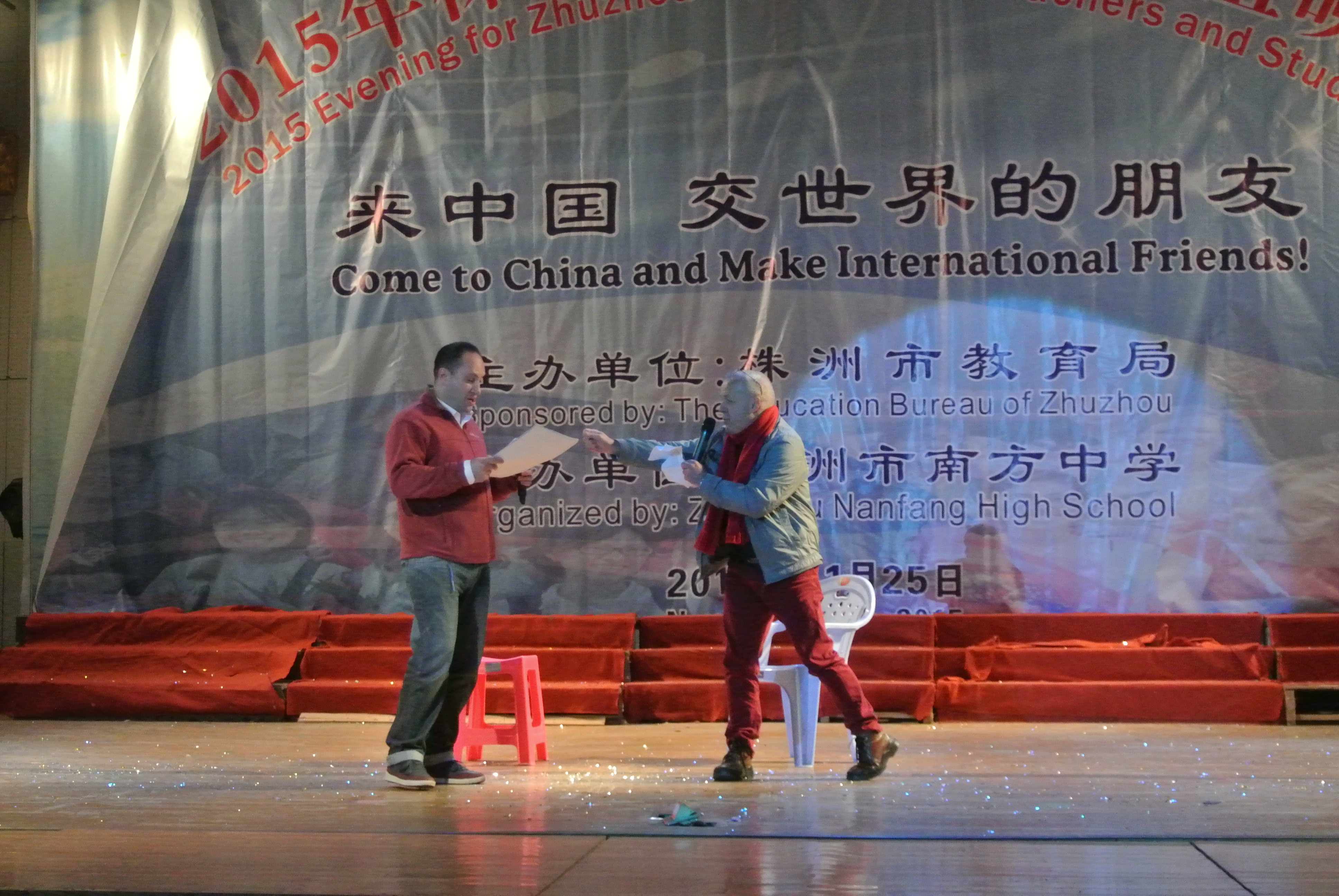 大家在简洁、欢快、开心、放松气氛中度过一个愉快的夜晚。南方中学对此活动非常重视,专门成立了工作组,认真细致的做好准备工作,全市各相关学校为本次活动的顺利进行也给予大力帮助,在这短短的不到2个小时的时间里,我们见证了各校外教们的多才多艺,欣赏了景炎中学、株洲市外国语学校、新凤凰国际高中、株洲市二中、株洲市九方中学、湖南铁道职院、湖南工业大学和南方中学中外师生的精彩表演,亲身体验了南方中学学生会志愿者的周到服务,更感受到各位外事专干们的高效率工作成果。在欢笑之余也有令人感动的一幕,远远的在台上可以看见不同学校的外教相互拥抱,彼此问候,他们也有很久没见了吧!这次晚会不仅仅只是一个汇演,更是一个让不同学校的外国友人相聚的机遇!外教们纷纷表示,非常期待着这种联谊性的活动,希望以此促进外教间以及中外师生间的交流与友谊。