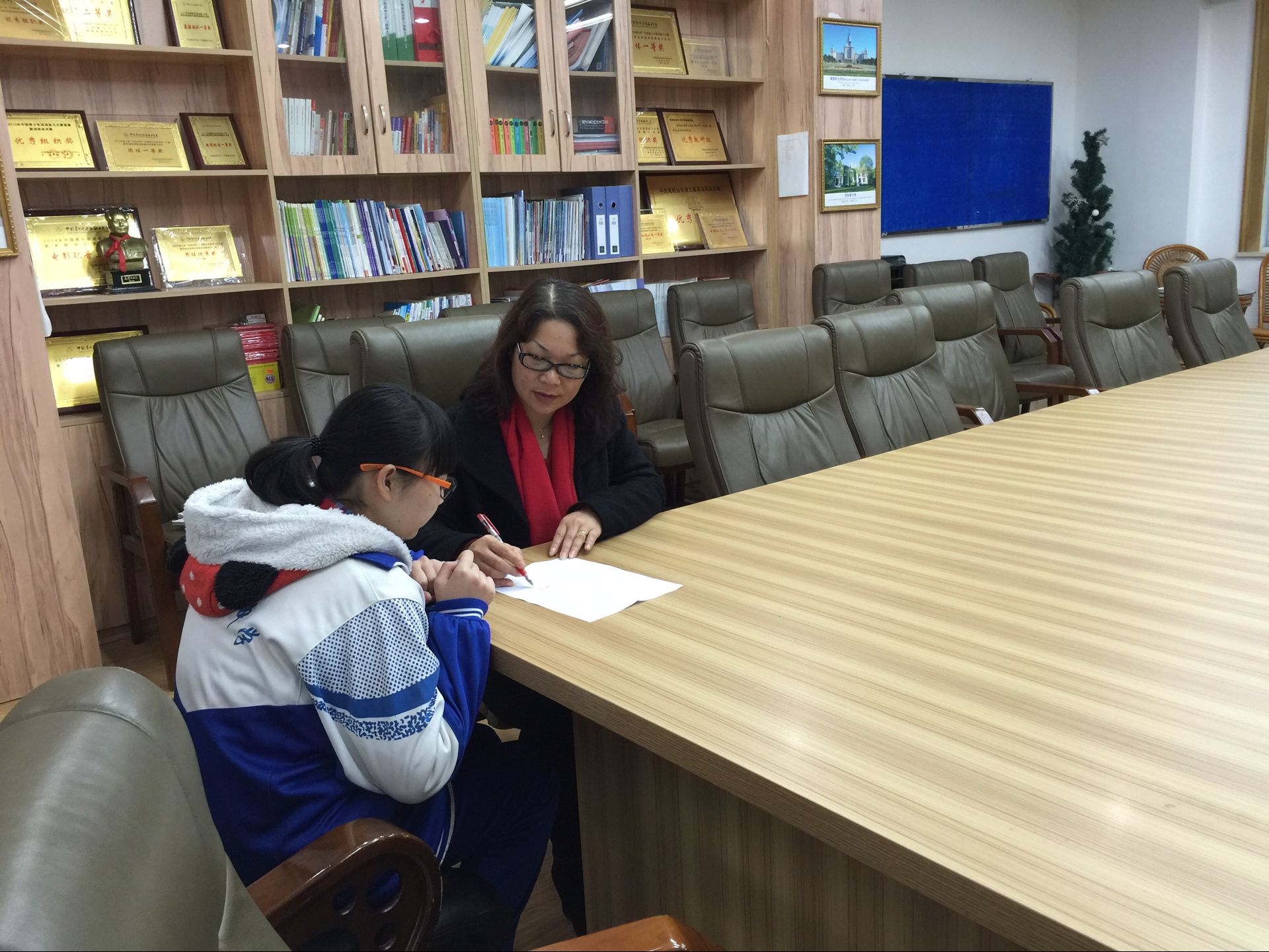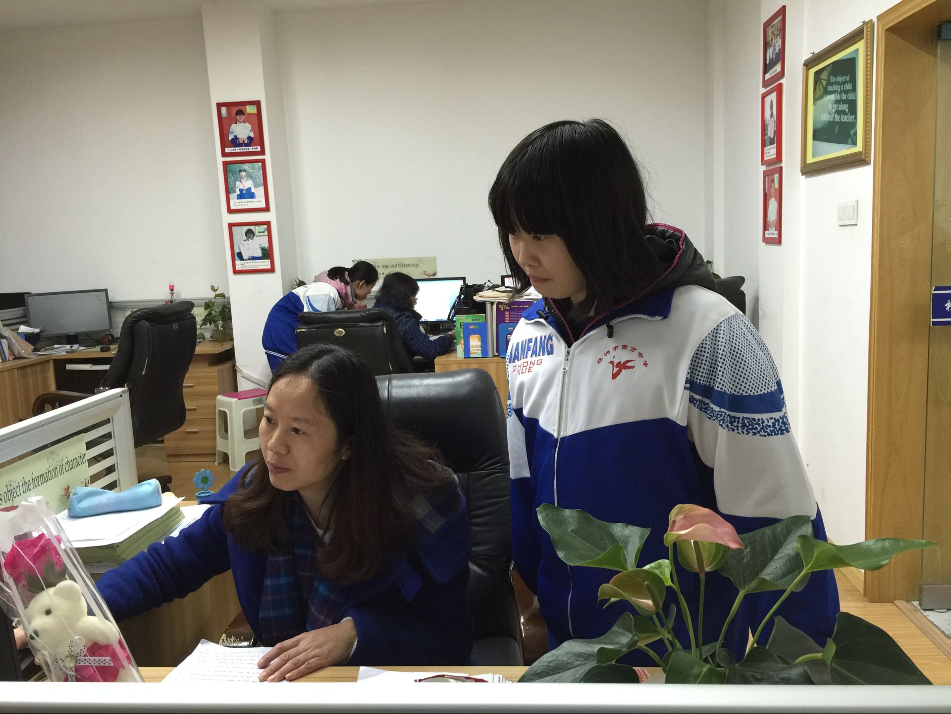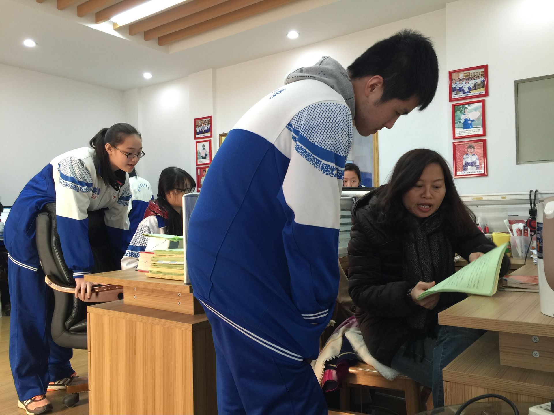 随着数、理、化全省竞赛成绩的相继张榜,学生们在学习、竞赛上不断勇攀高峰,积极紧张地准备接下来的英语创新作文大赛。英语办公室中、课间走廊上,随处可见学生找老师探讨、修改作文的场景,而英语老师们倾全组上下之力,不顾休息、不辞辛苦,争分夺秒利用课下辅导学生,可谓呕心沥血;英语教研组组长谢舒雁老师用镜头记录下这一幕幕,直呼为之“动容”!