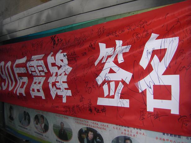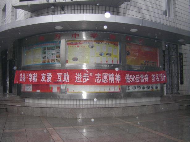 3月5日下午,在纪念“向雷锋同志学习”48周年之际暨中国第12个志愿者日之际,由南方中学团委在科教楼前发起和组织了“弘扬‘奉献、友爱、互助、进步’精神,做90后雷锋”的签名活动,活动吸引了全校同学的参与,反响热烈,正式拉开我校青年志愿服务的序幕。