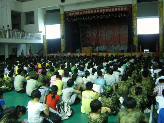 8月14日晚7点,南方中学特邀请国防科技大学正军级少将周世光教授来校作专题讲座。来自南方中学高一军事综合实践训练营的成员参加了本次讲座,聆听报告。