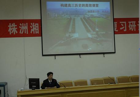 最后,湘潭市一中刘卫江老师为大家做了一场《构建高三历史的高效课堂》专题讲座,从做好课前准备、创设最佳的课堂环境、抓好课后巩固环节三个方面进行了仔细分析和介绍,为与会人员提供了许多有益启发。