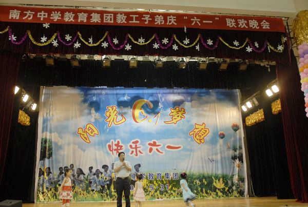 五月三十一日晚,校体育馆里灯火辉煌,充满着欢歌笑语。南方中学教育集团教工子弟“庆六一”联欢晚会在这里隆重举行。