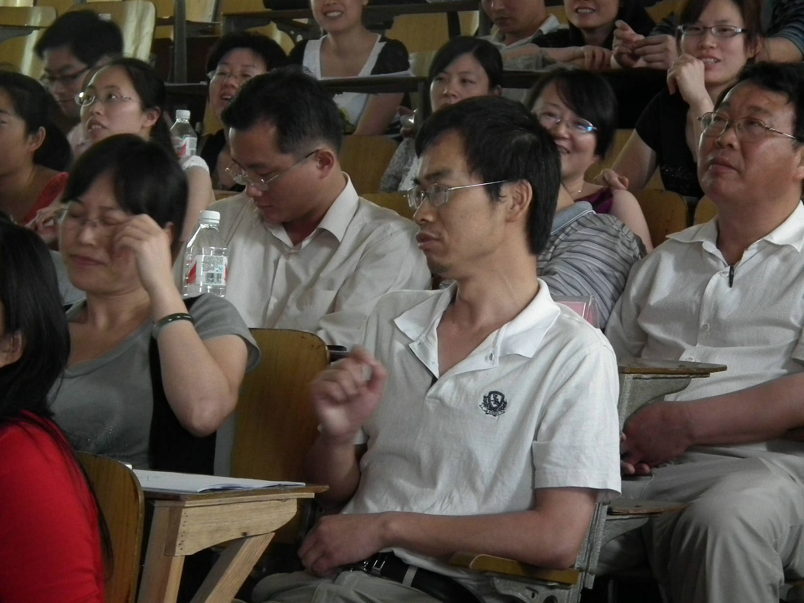 本次学科基地申报的第二个环节包括参评学校就申报条件、建设规划及建设措施进行陈述、其他学校教师现场提问、陈述学校答辩、投票等四个环节。我校的语文特级肖守志老师、外语市级学科带头人刘正芳老师、生物市级学科带头人吴江红老师、地理市级骨干教师彭武燕老师、政治市级学科带头人雷伟华老师分别代表本学科主讲此次的申办想法,并接受了现场提问,他们有的放矢,充分挖掘自身学科优势,演讲时条理清晰,构思严谨,答辩机智,获得了在座其他学校教师的肯定,最终排名全市之首,并且语文和外语的优势非常明显。