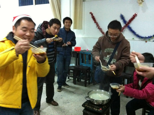 联谊活动由包饺子拉开序幕,青年才俊们齐动手,包出的饺子各式各样,兼通南北。当然,煮出的饺子则是热气腾腾,香气四溢。品尝完劳动成果之后,南方中学校长夏立威,工会主席曾四喜做了简短的讲话,夏校长用自己的亲身经历现身说法:欲立业,先成家。希望大家珍惜青春年华,早日找到自己的幸福,并在平安夜祝愿大家幸福、开心、平安。曾主席告诉大家:活动要玩得开心,拓展自己的活动空间,南方中学工会及团委会为大家打造更多的交流平台,使不同单位的青年们能有更多的交流机会。