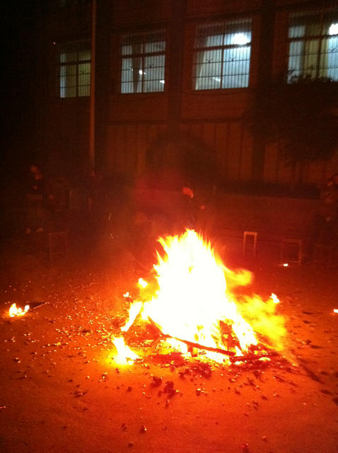 吃饱喝足后,就进入到篝火晚会的游戏时间。在学校操场上,点燃了熊熊的篝火,驱散了冬日的寒气。大家围在篝火旁边,从破冰游戏开展,开展了“大树与松鼠”、“五毛与一块”等多个游戏,促进了大家的认识与交流。整个篝火晚会气氛活跃,大家都纷纷展示才艺,充分展现了青年们的青春风采与活力。