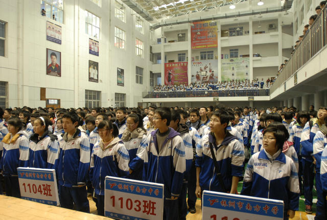 2012年2月17日下午4时,南方中学2012年春季开学典礼在体艺馆隆重举行。南方中学近2000名师生参加了开学典礼,学校主要领导均出席了本次仪式。仪式由学校德育副校长叶欣主持,夏立威校长致开学典礼辞,林喜元书记宣读先进集体和先进个人表彰决定,陈其北副校长宣读奖学金获得者名单。