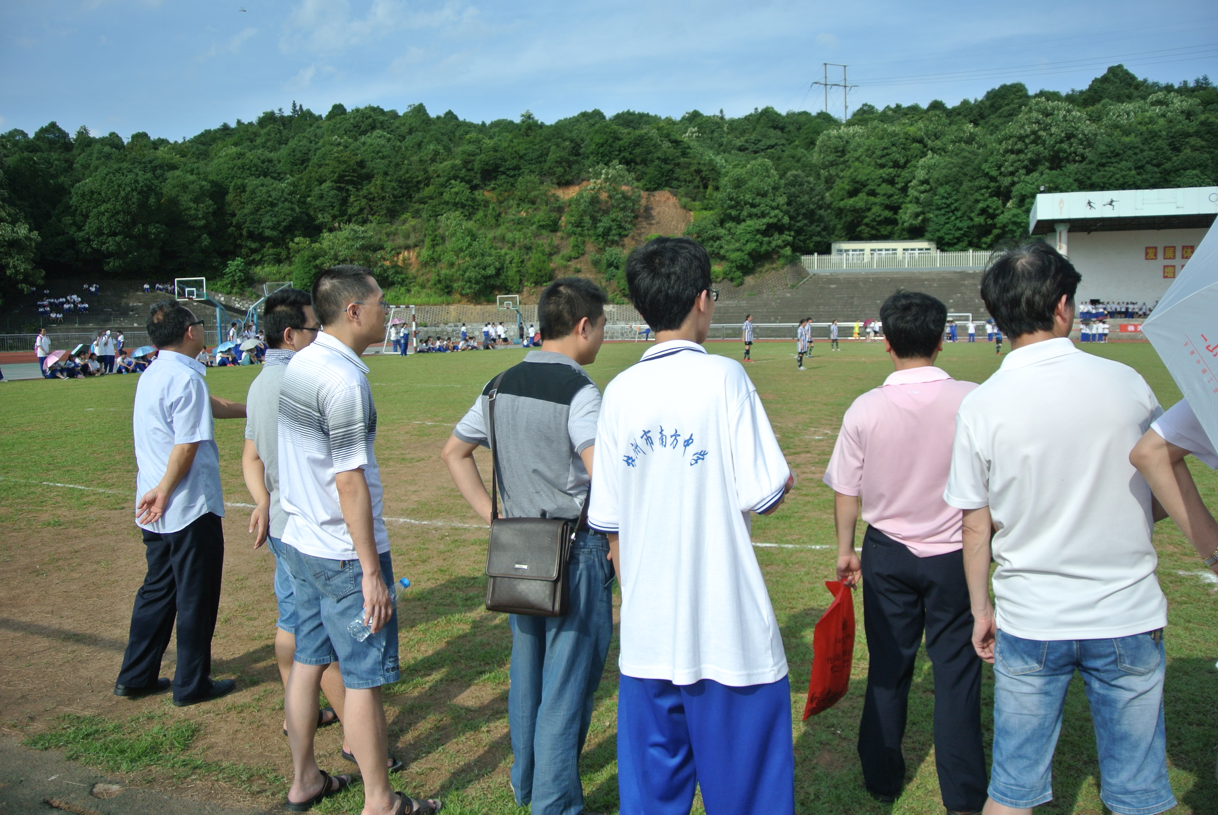 下午四时许,时温33度,山上操场,太阳炙烤着大地。学生们飞出阴凉的教室:球员们摩拳擦掌,观众同学们观赛热情不减,操场上争霸赛的情绪高涨,直欲与炎炎烈日下的气温叫板;班主任们也轻轻弹去周身大半天工作的辛劳,到场组织,为孩子们助威加油。