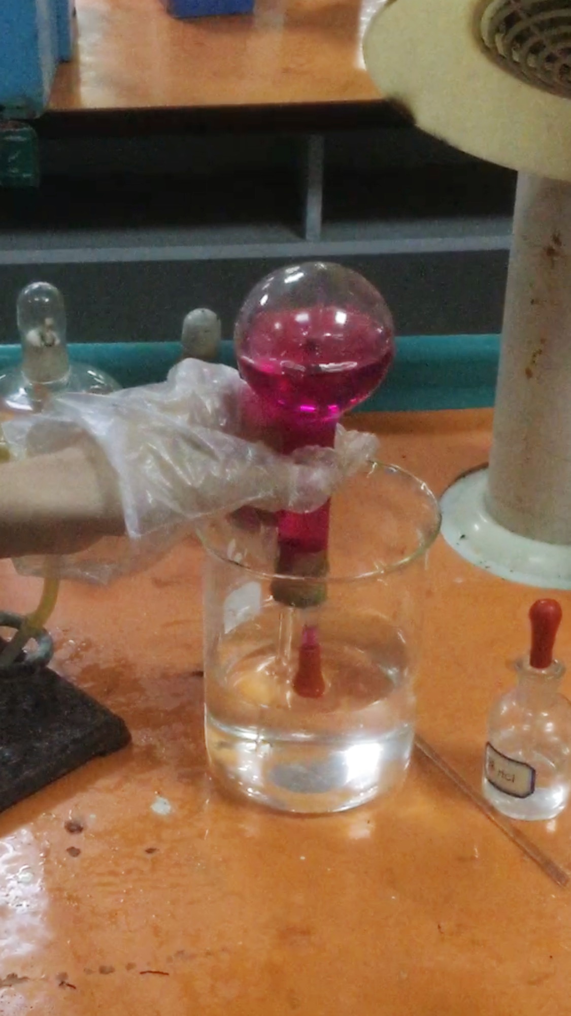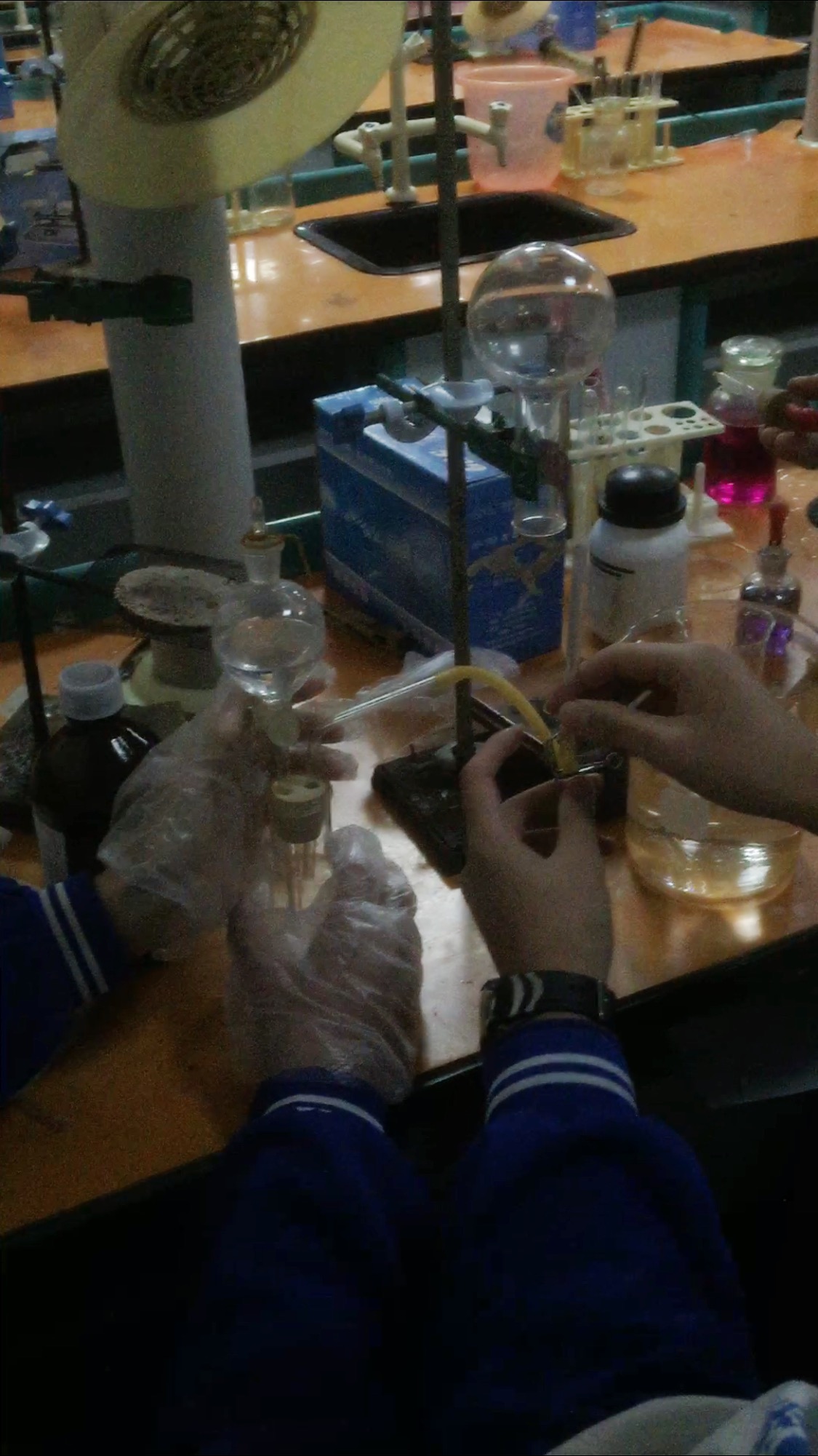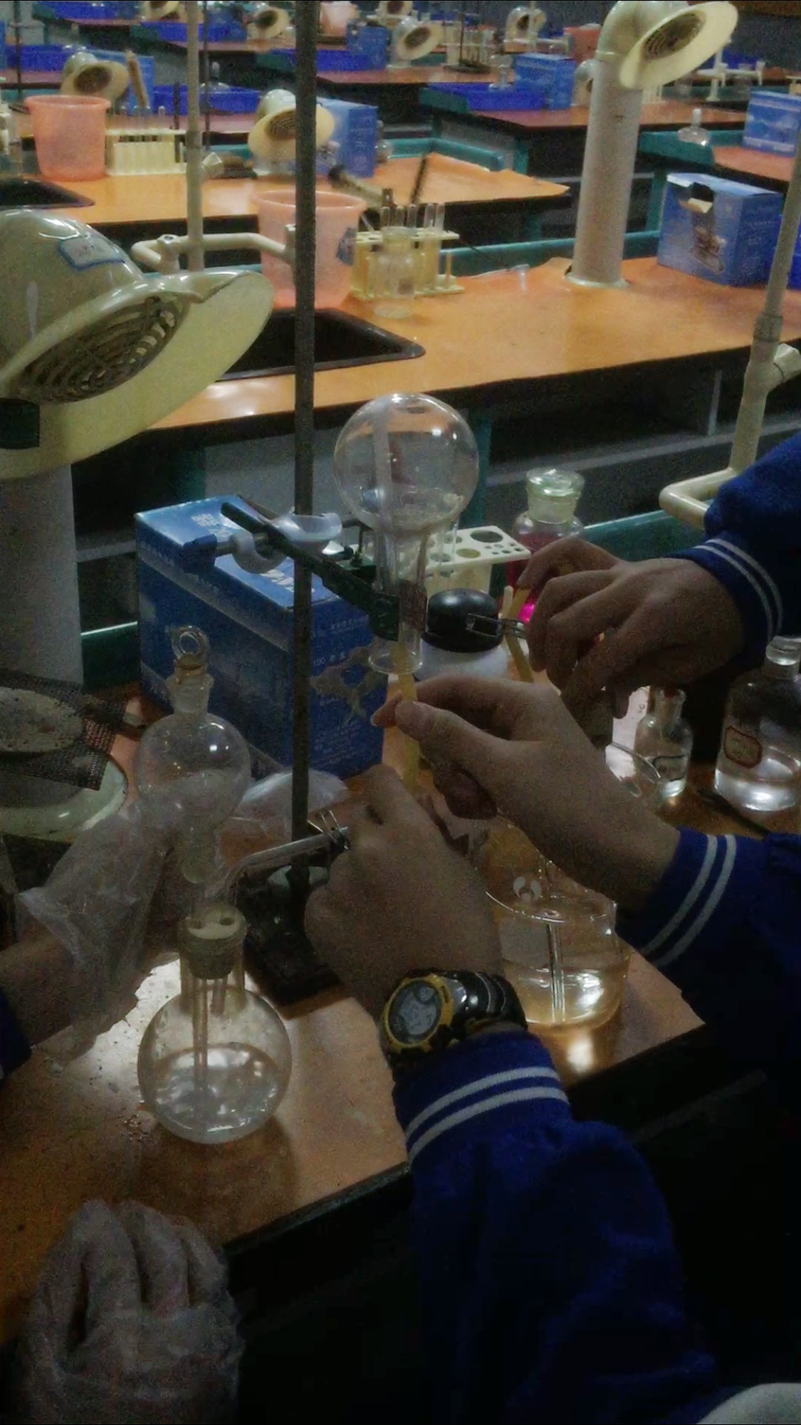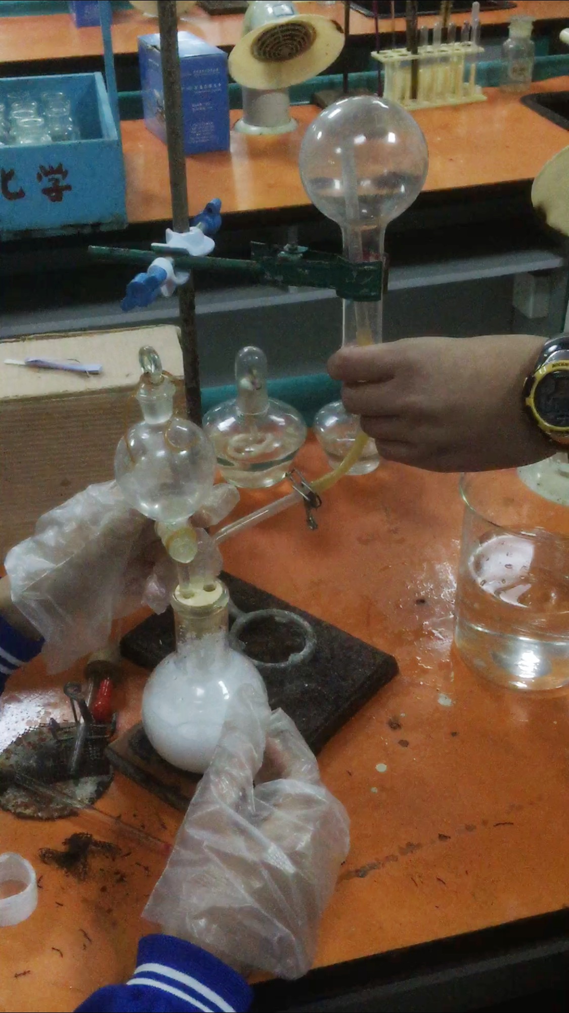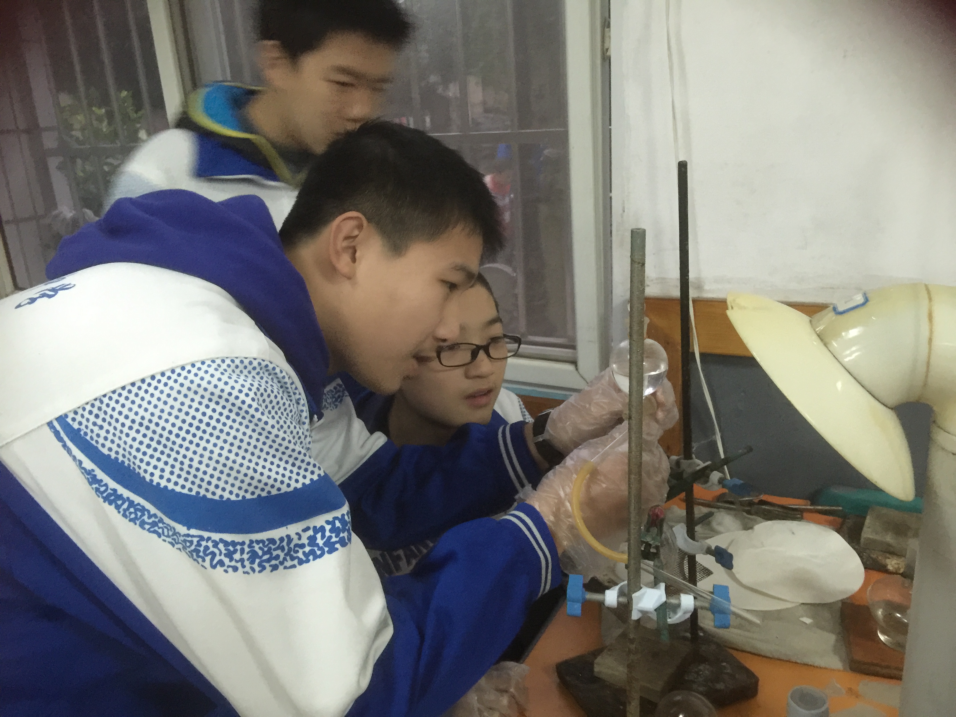 今天下了校本课,我指导他们固定收集氨气的圆底烧瓶,尽量收
