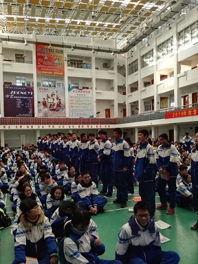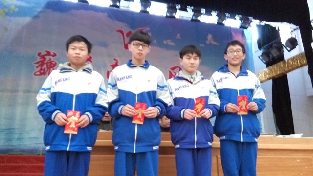 首先进行的是为月考优胜者颁奖。年级组长谭雄杰老师宣读了获奖名单,包括与绝对最高分相差30分至50分以内的,年级总分前30名,单科状元,国际班和英才班总分前10名的,进步幅度比较大的同学。有几个同学拿奖拿到手软,既是与绝对最高分相差50分以内的,又是单科状元,也是总分年级前十,让台下无缘上台的同学艳羡不已。