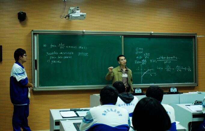 首先,湖师大高三组数学教师走进我校优秀青年数学教师颜伟的课堂,颜伟老师得到了湖师大高三数学组老师的一致认可和高度的评价。湖师大数学教研组副组长说:“南方中学的学生在课堂上积极主动,思维能力强,语言描述清晰到位,而老师课堂准备充分,简明扼要,教学功底扎实。”