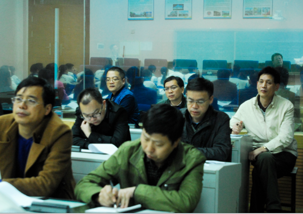 (湖师大附中数学老师正在微格教师听课)