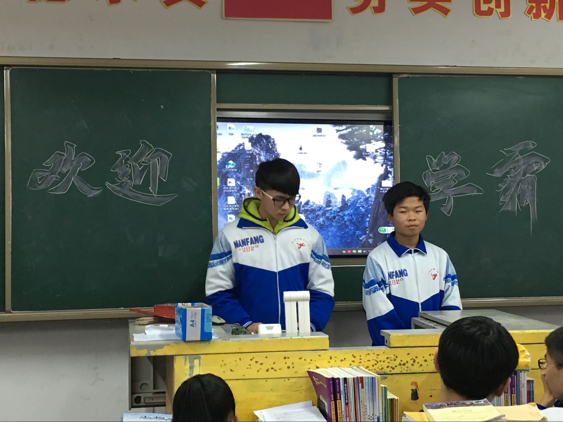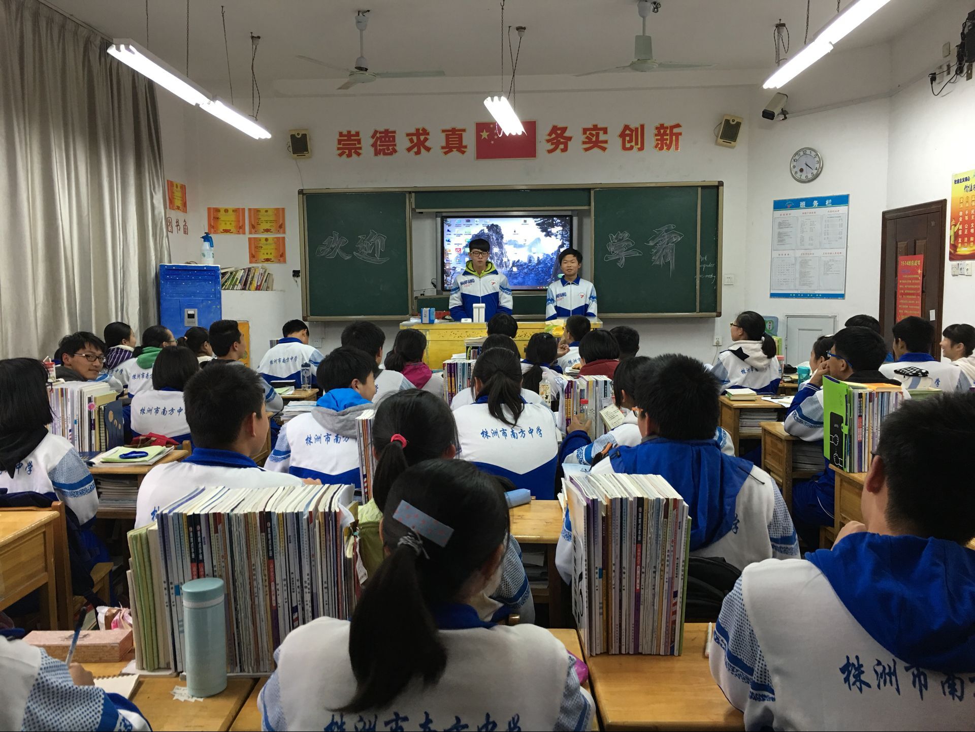 3月9日下午第八节班会课,高一年级1504班的讲台前站着两名外来人员——一年级的超级学霸1512班的罗安和和何沛东同学给他们做学习经验交流来啦。