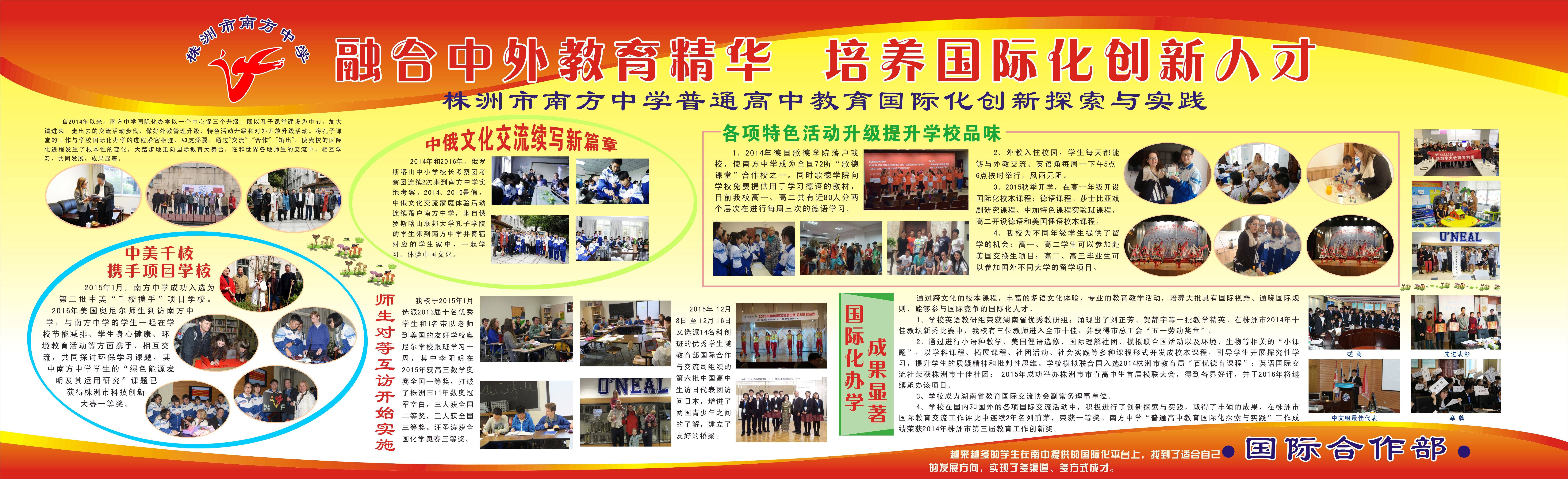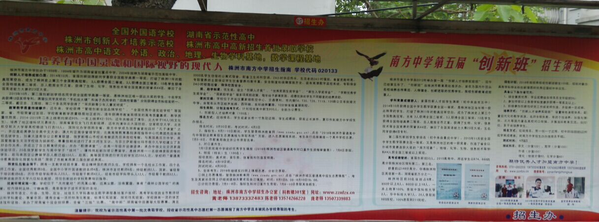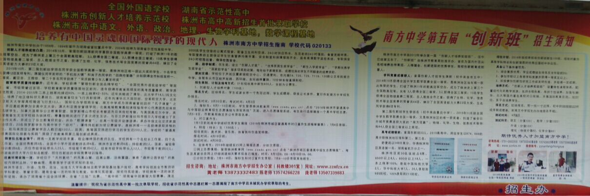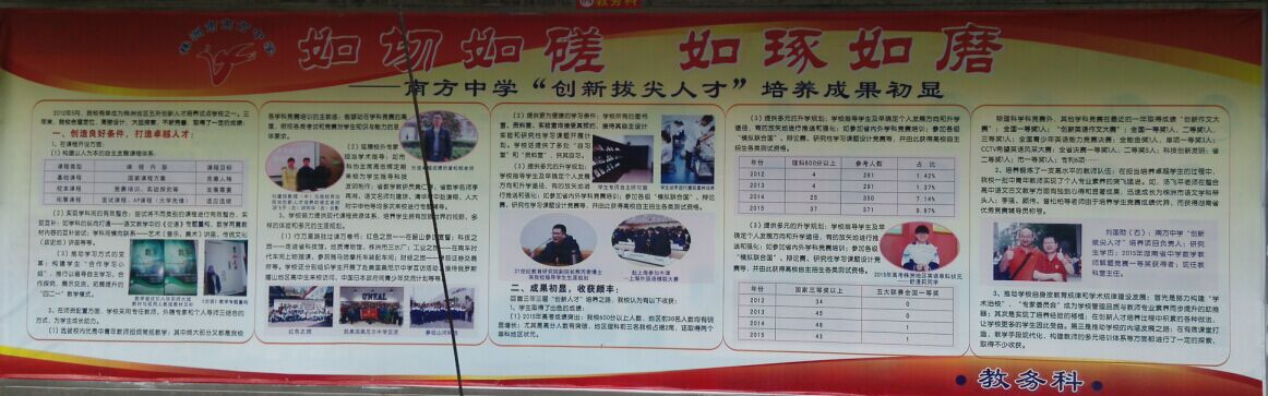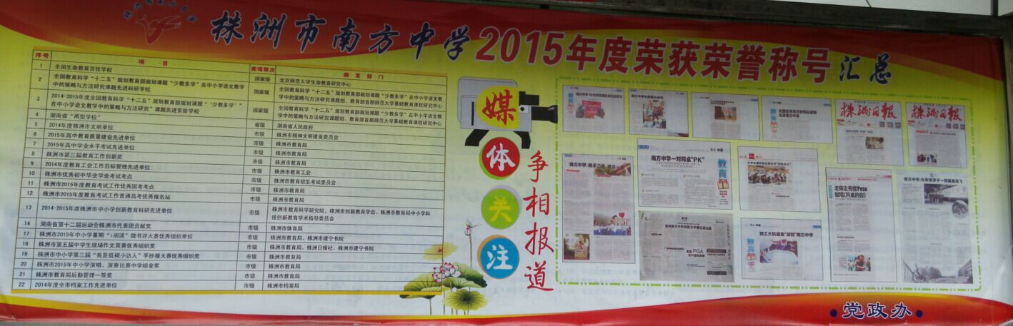 近日,为宣传学校,向社会全面展示南方中学办学条件、办学特色和办学成果,各年级、科室按照学校的安排和要求,有关人员在一周之内加班加点,精心设计,于近日已将长廊24块板报进行了全面更新。各版块主题突出,图文并茂,版面生动活泼,分别从不同角度反映了学校的亮点和特色。赏心悦目的板报吸引众多过往行人驻足观看,引来赞声一遍。