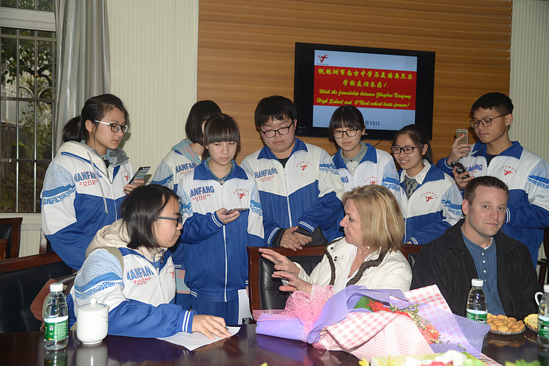 3月13-14日,美国北卡罗来纳州德拉姆市奥尼尔中学师生10人走进我校,进行了主题为“热爱自然,保护地球”2016中美师生友好交流活动。奥尼尔中学的7位学生与南中学子“结对”,走进中国课堂,共同研讨环保学习课题,一起种下“友谊树”,体验中国文化,增进双方友谊。