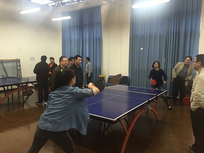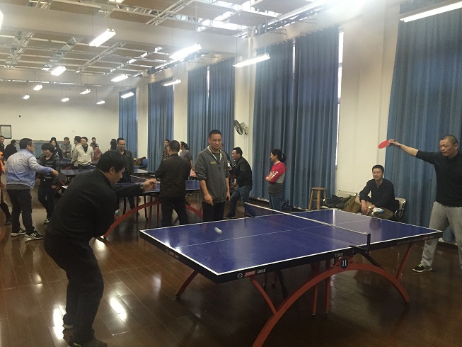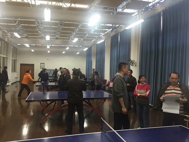 比赛场馆设在体艺馆五楼的乒乓球室,第八节课后,老师们按时到达,按照本年级乒乓健将左建军老师安排的对阵分组进行淘汰赛,一组的胜者和另外一组的胜者再次对战,败者也是如此,气氛一时活跃起来。